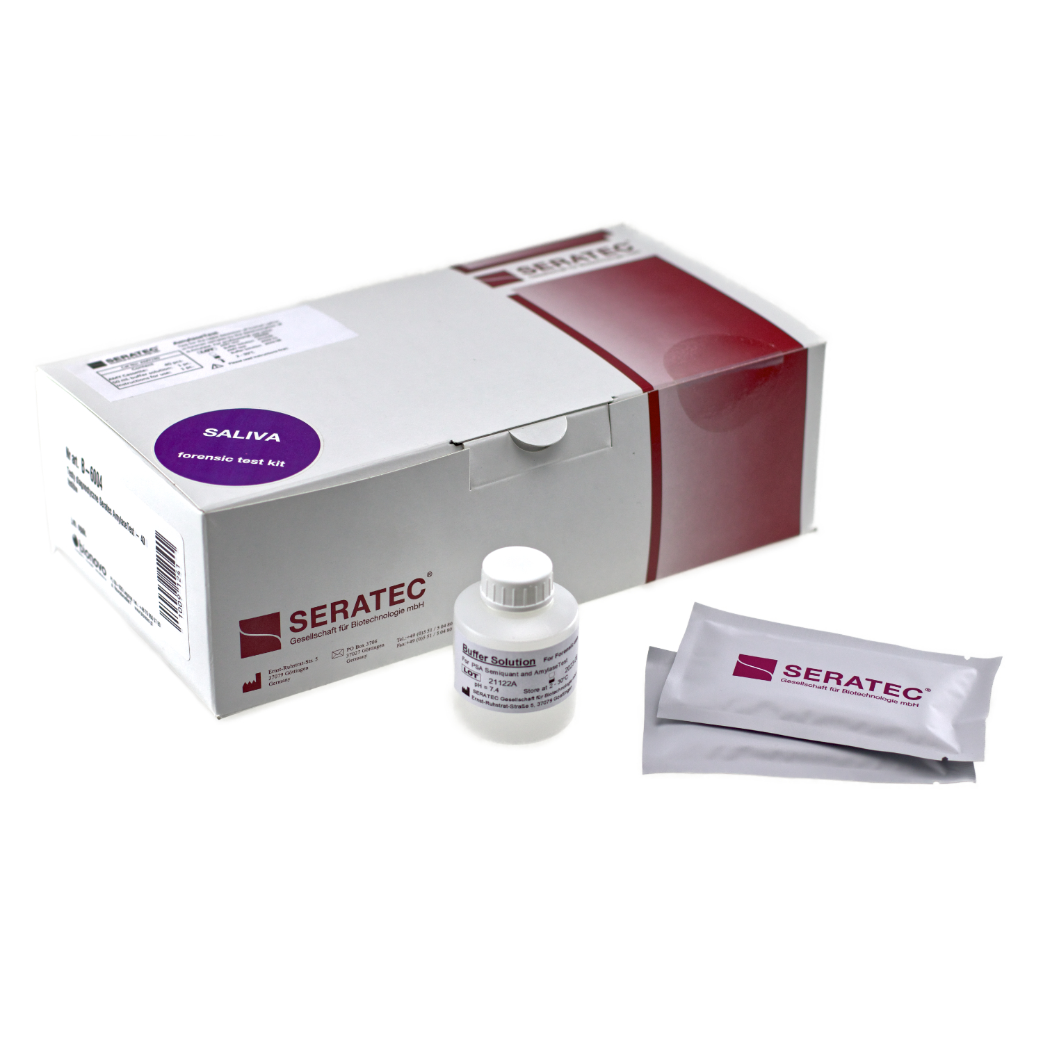 Seratec® AmylaseTest zestaw immunochromatograficzny do szybkiego identyfikowania ludzkiej α-amylazy. Wykrywa ślinę w próbkach do analizy kryminalistycznej. Próg wykrywalności ludzkiej α-amylazy wynosi 50 mIU/ml. Opakowanie zawiera 40 kaset testowych, 50 ml roztworu buforowego, pipety plastikowe oraz instrukcję obsługi.