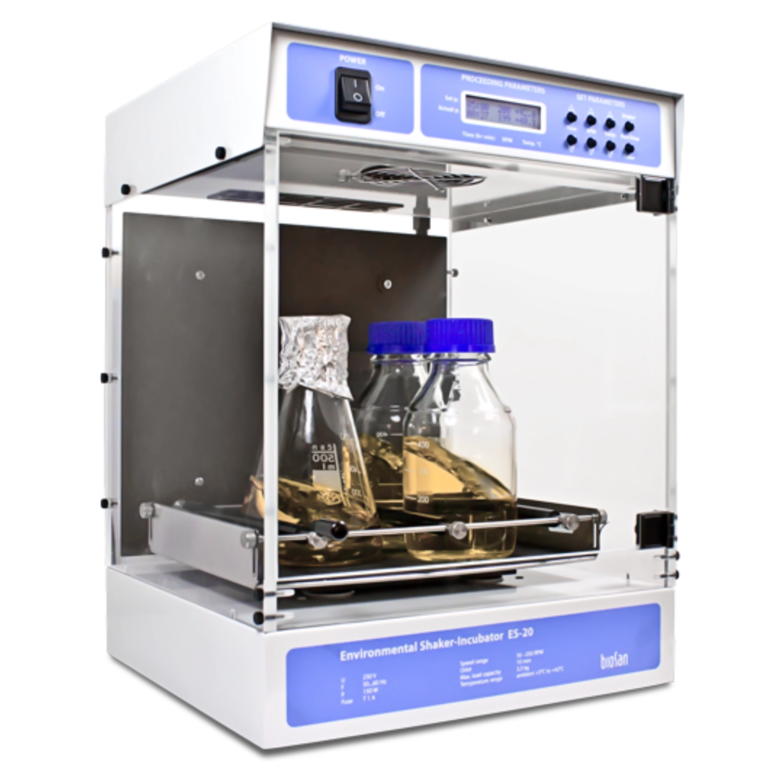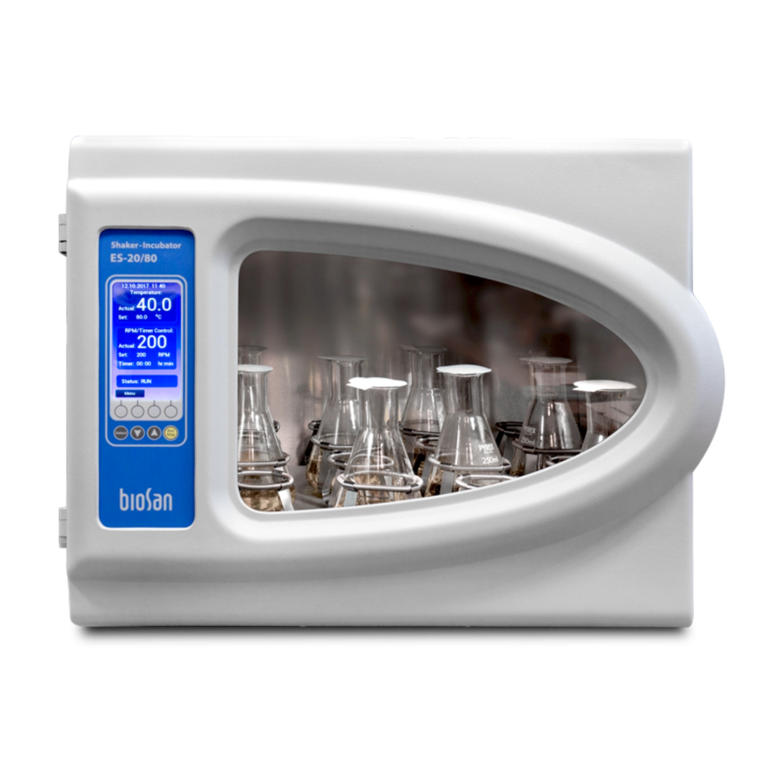 Inkubator z wytrząsaniem ES-20/80 firmy Biosan – dostarczany bez platform. Silnik bezszczotkowy, cyfrowe sterowanie i kontrola temperatury (regulator PID), możliwość łączności z komputerem przez Bluetooth. Prędkość obrotowa wytrząsania regulowana w zakresie od 50 do 400 obr./min. Regulacja temperatury od +25°C (5°C powyżej temperatury otoczenia) do +80°C. Szeroka gama akcesoriów.