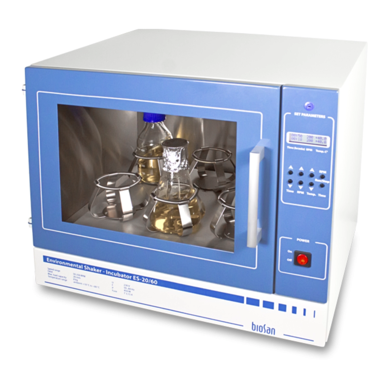 Inkubator z wytrząsaniem ES-20/60 firmy Biosan – dostarczany bez platform. Silnik bezszczotkowy, łagodny rozruch wytrząsania platformy, sterowanie cyfrowe (regulator PID). Napęd bezpośredni zapewnia długą, stabilną pracę nawet do 720 h. Prędkość obrotowa wytrząsania regulowana w zakresie od 50 do 250 obr./min. Regulacja temperatury od +25°C do +80°C. Szeroka gama akcesoriów.