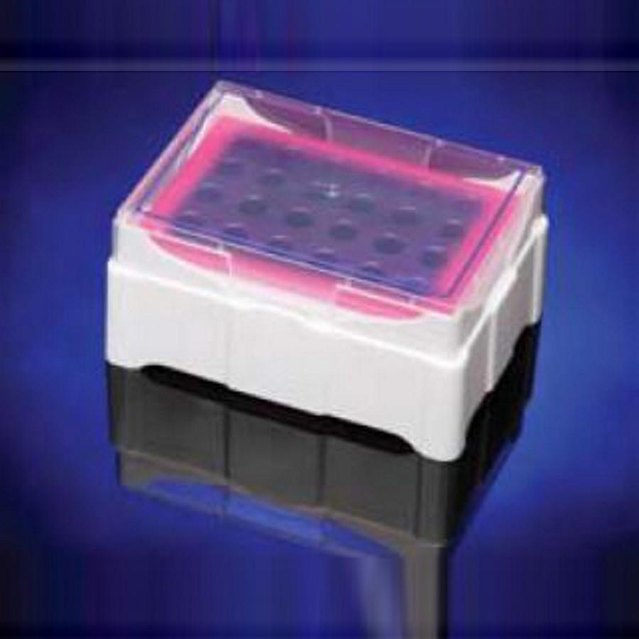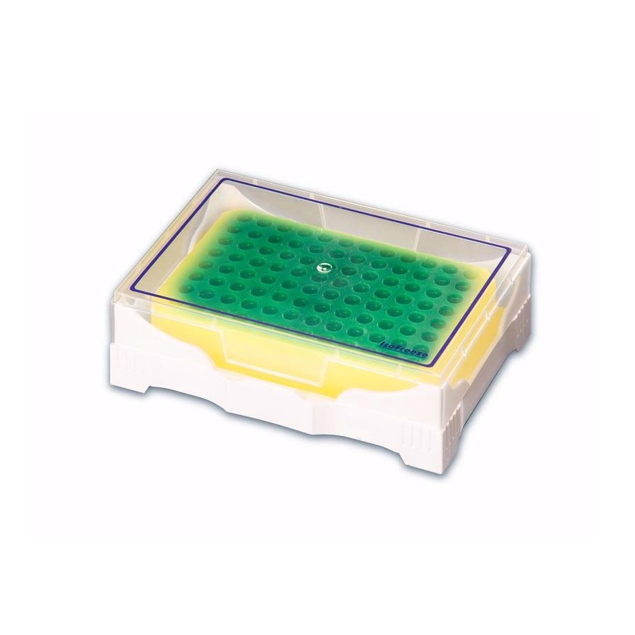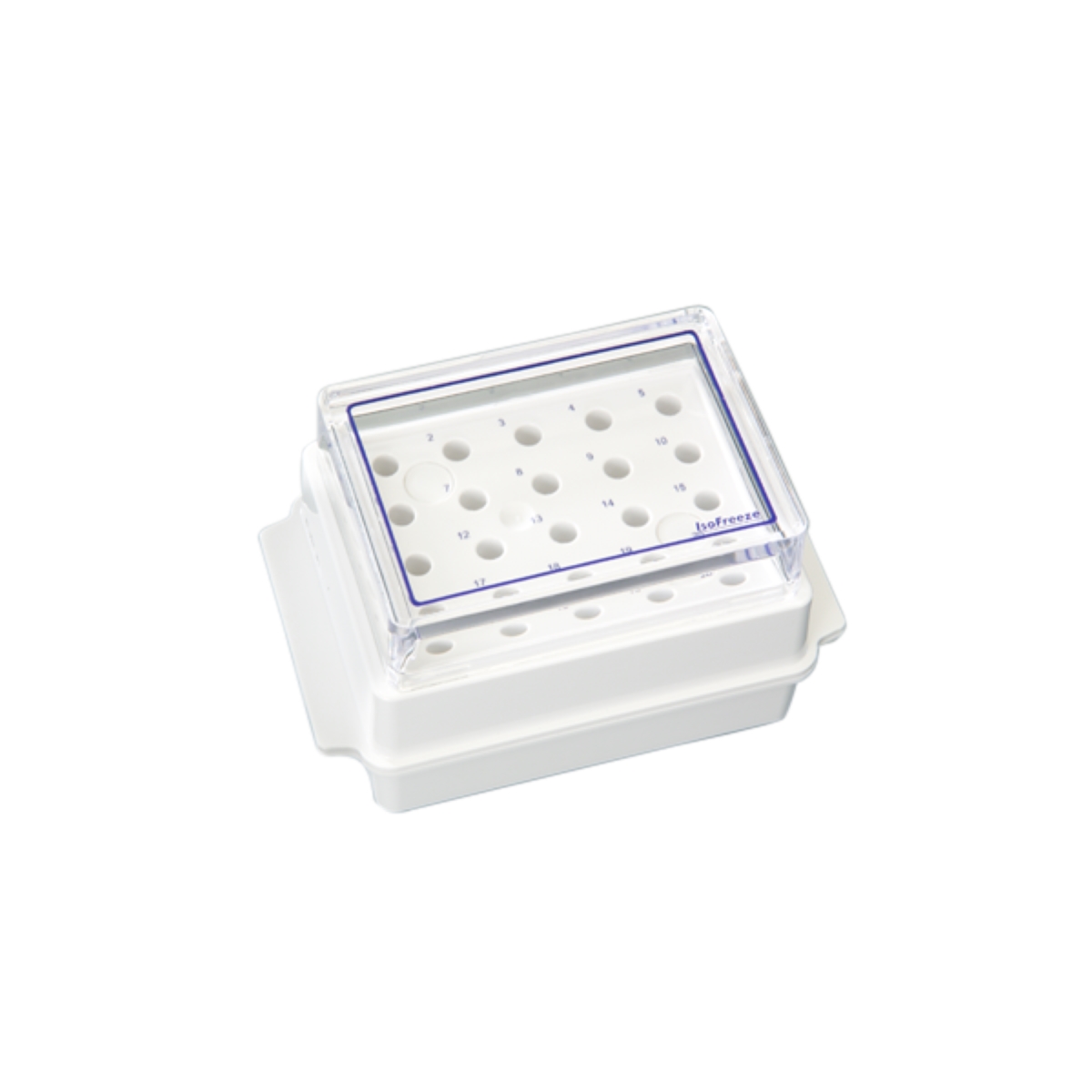 Pudełko do bezpiecznego przechowywania odczynników PCR, komórek, enzymów lub innych materiałów wrażliwych na temperaturę. Przeznaczone na 20 probówek 1,5 ml lub 2 ml albo po odwróceniu wkładu na 20 probówek 0,5 ml. Ciecz chłodzącą stanowi nietoksyczny żel. Wykonane z poliwęglanu.