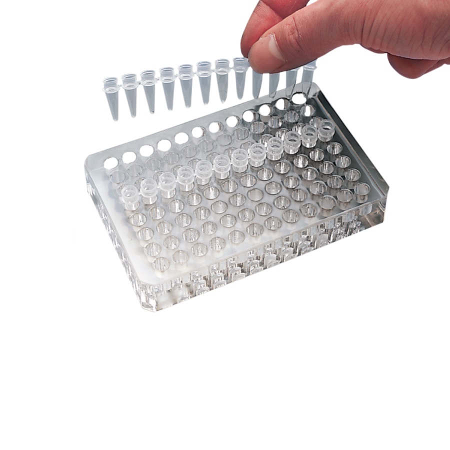 Statyw przeznaczony do przechowywania i transportu schłodzonych lub zamrożonych próbek. Probówki PCR o poj. 0,2 ml mogą być przechowywane w statywie co najmniej 30 min. w temp. < 0°C, jeśli został on przedtem schłodzony przez ok. 12 godz. w temp. -20°C. Statyw posiada 96 (8 x 12) otworów, które umożliwiają umieszczenie pasków 8- lub 12-stanowiskowych bądź pojedynczych probówek.