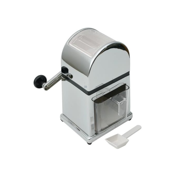 Mocny i skuteczny mechanizm kruszący lód, z zębami z utwardzanej stali nierdzewnej. Pokrywka i wyjmowany pojemnik na lód z przeźroczystego tworzywa sztucznego, w komplecie szufelka do pokruszonego lodu.