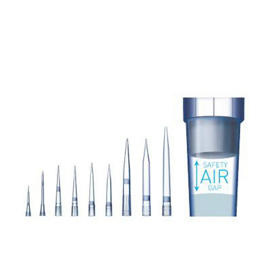Końcówki wykonane z czystego polipropylenu, z polietylenowym filtrem. Zapewniają dokładne i bezpieczne pipetowanie. Zmniejszają ryzyko zanieczyszczeń krzyżowych, zapobiegając powstawaniu aerozoli. SafetySpace™ Filter Tips posiadają większą przestrzeń między próbką a filtrem niż tradycyjne końcówki, co uniemożliwia zetknięcie próbki z filtrem, niezależnie od techniki pipetowania czy rodzaju płynu.