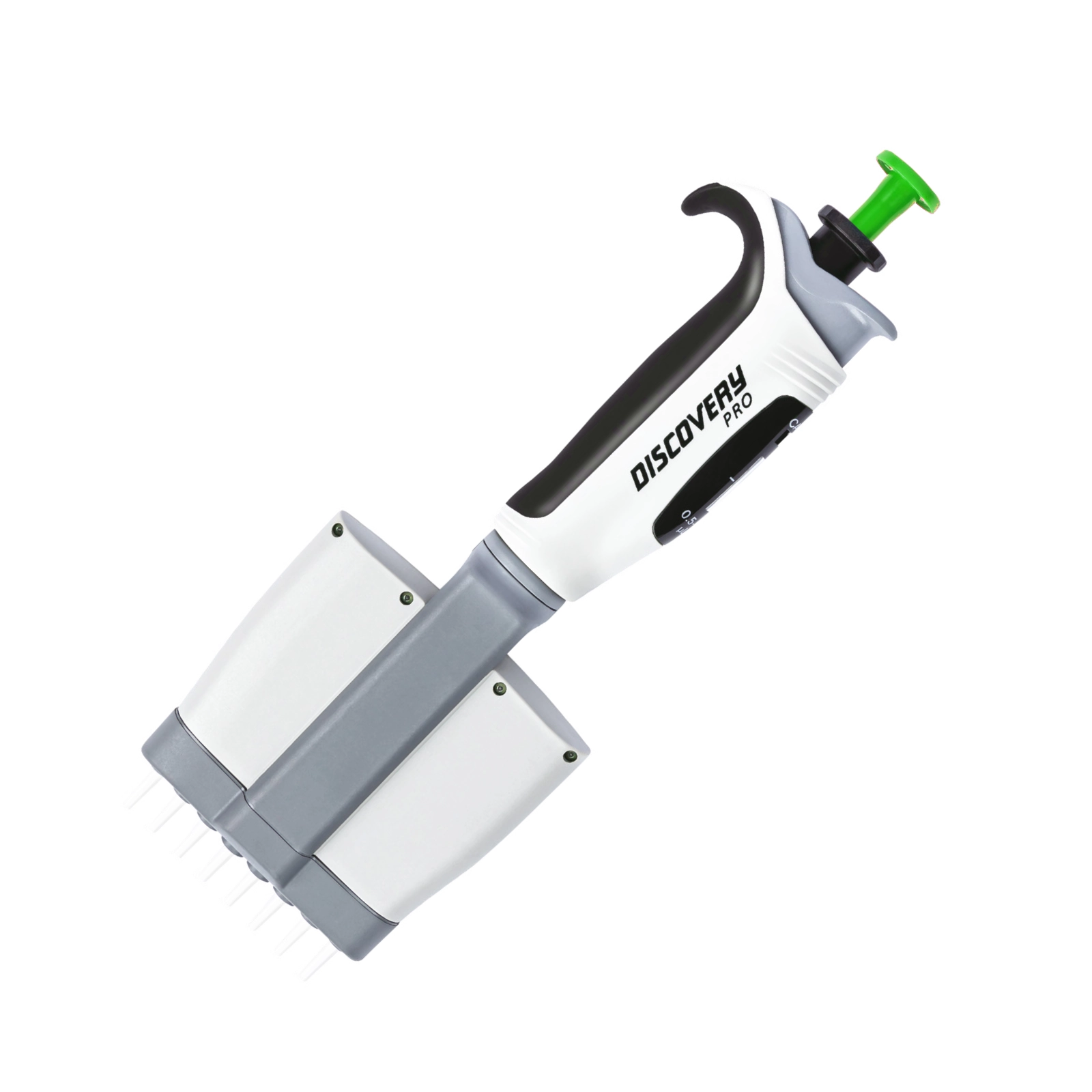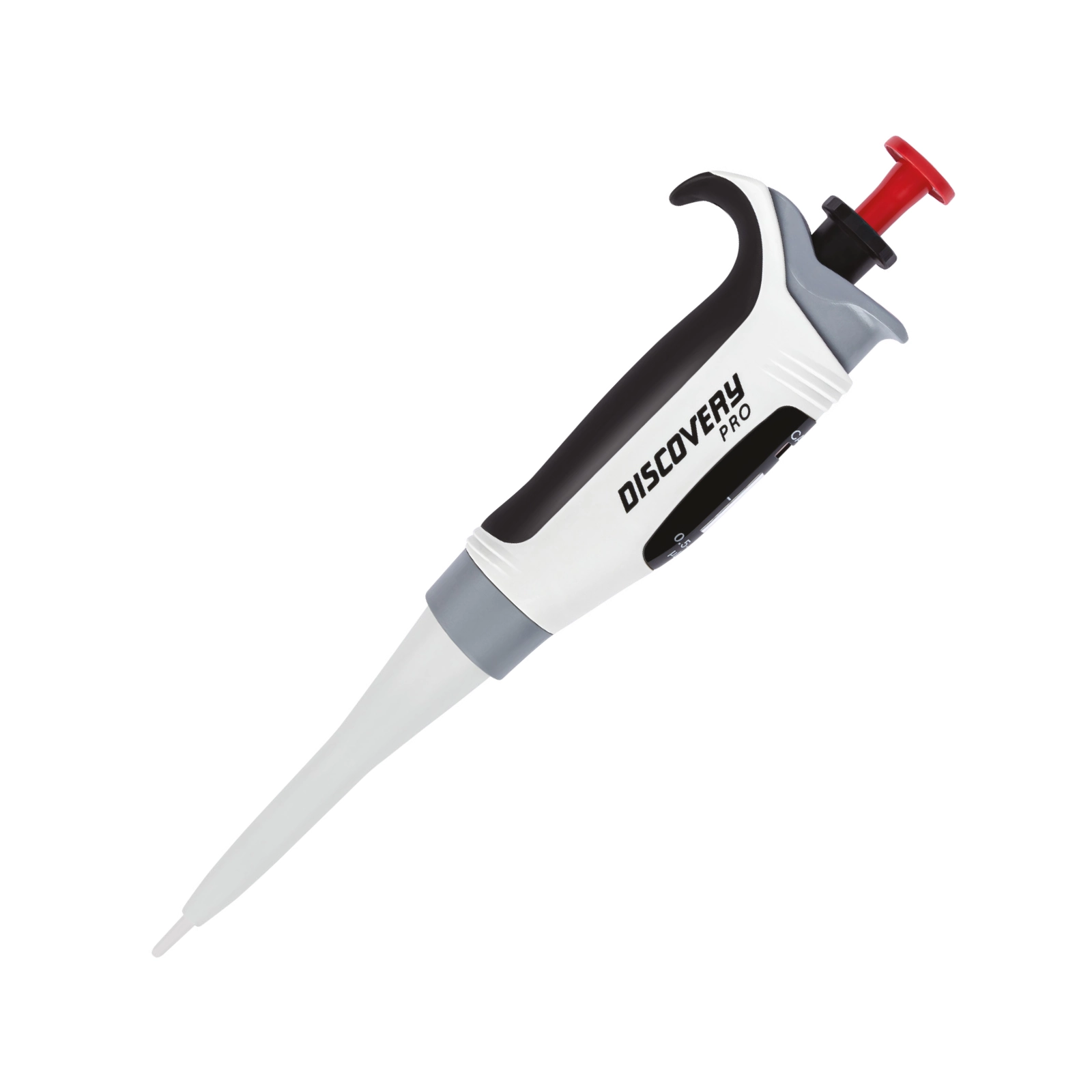 - Pipety Discovery Pro mają wyprofilowany kształt rękojeści oraz wygodną podpórkę palca. Zapewnia to pewny chwyt oraz jednocześnie minimalizuje obciążenie nadgarstka.