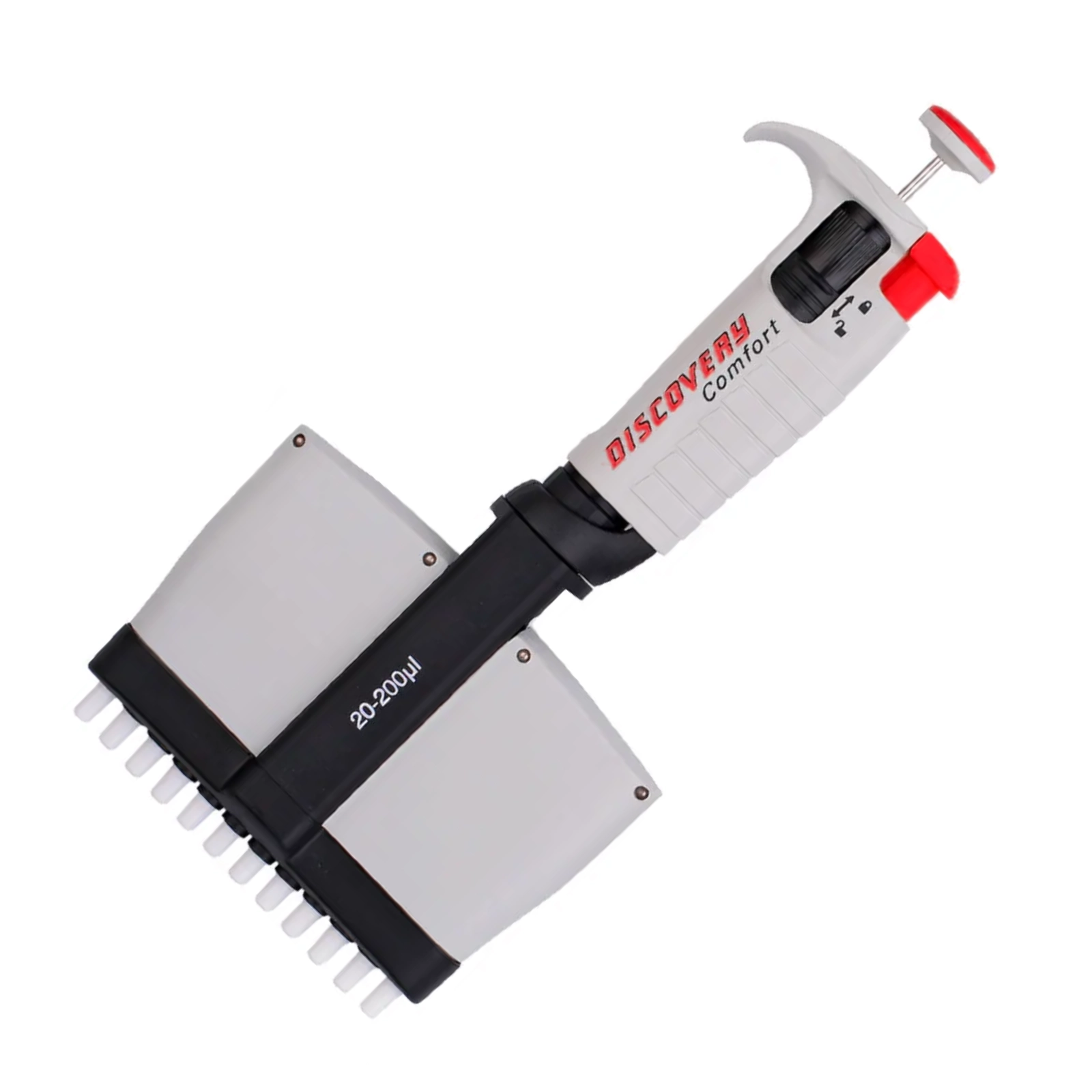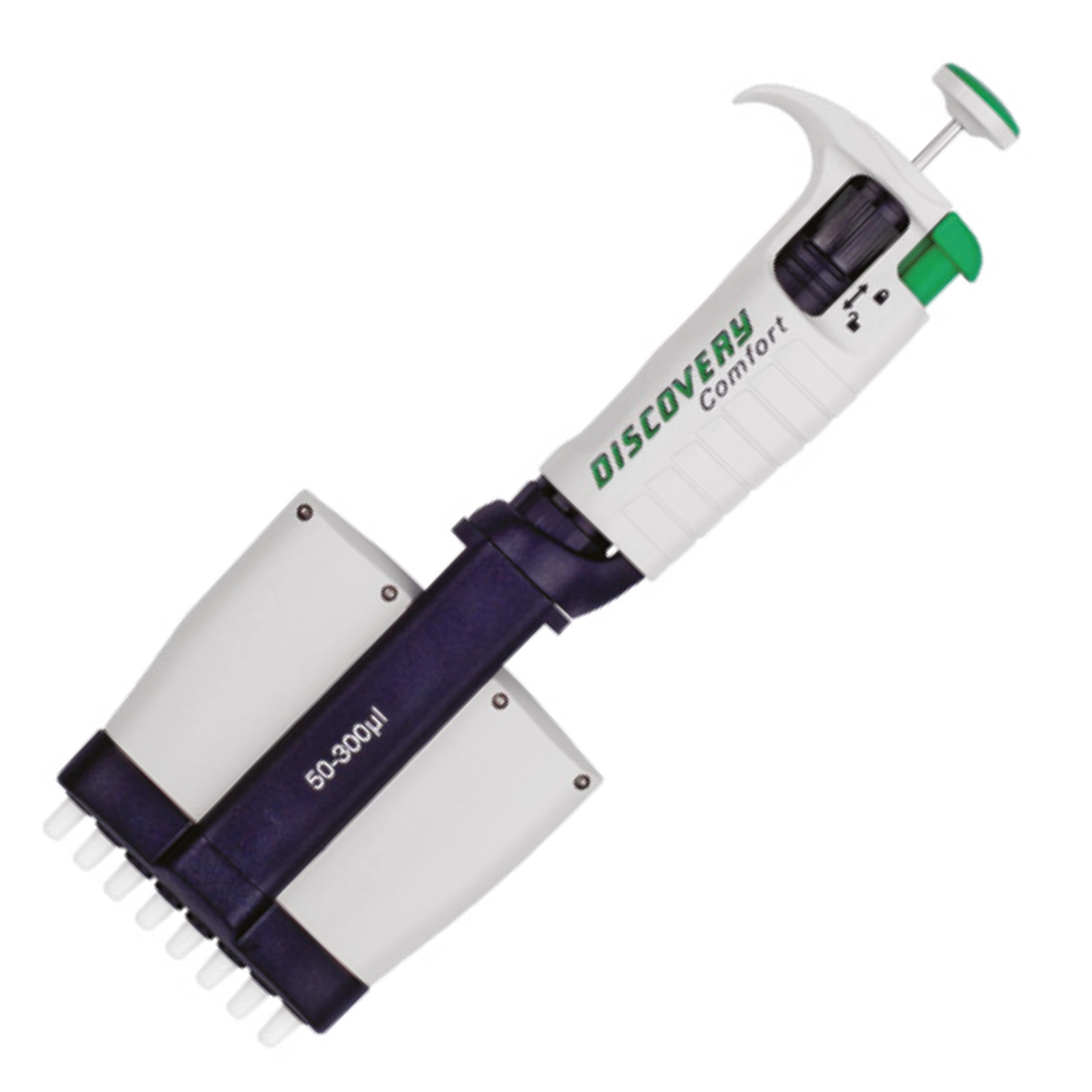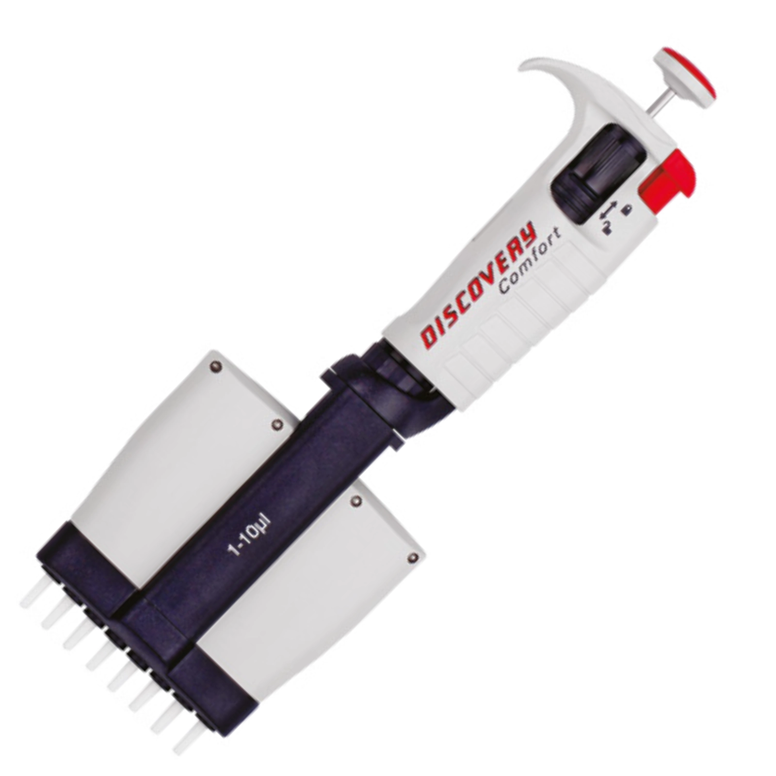 - Pipety wielokanałowe Discovery Comfort zostały wyposażone w specjalny mechanizm, który redukuje siły potrzebne podczas zakładania i zrzucania końcówek.