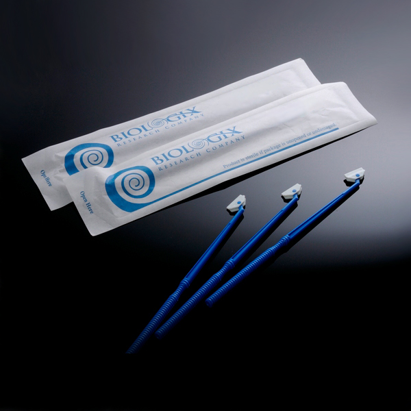 Skrobaczki do kultur komórkowych wykonane z polietylenu (PE). Posiadają obrotowe ostrze oraz specjalnie zaprojektowaną, antypoślizgową rączkę. Zapewnia to możliwość precyzyjnego zeskrobywania, przy jednoczesnej minimalizacji uszkodzeń zbieranych komórek. Sterylne.