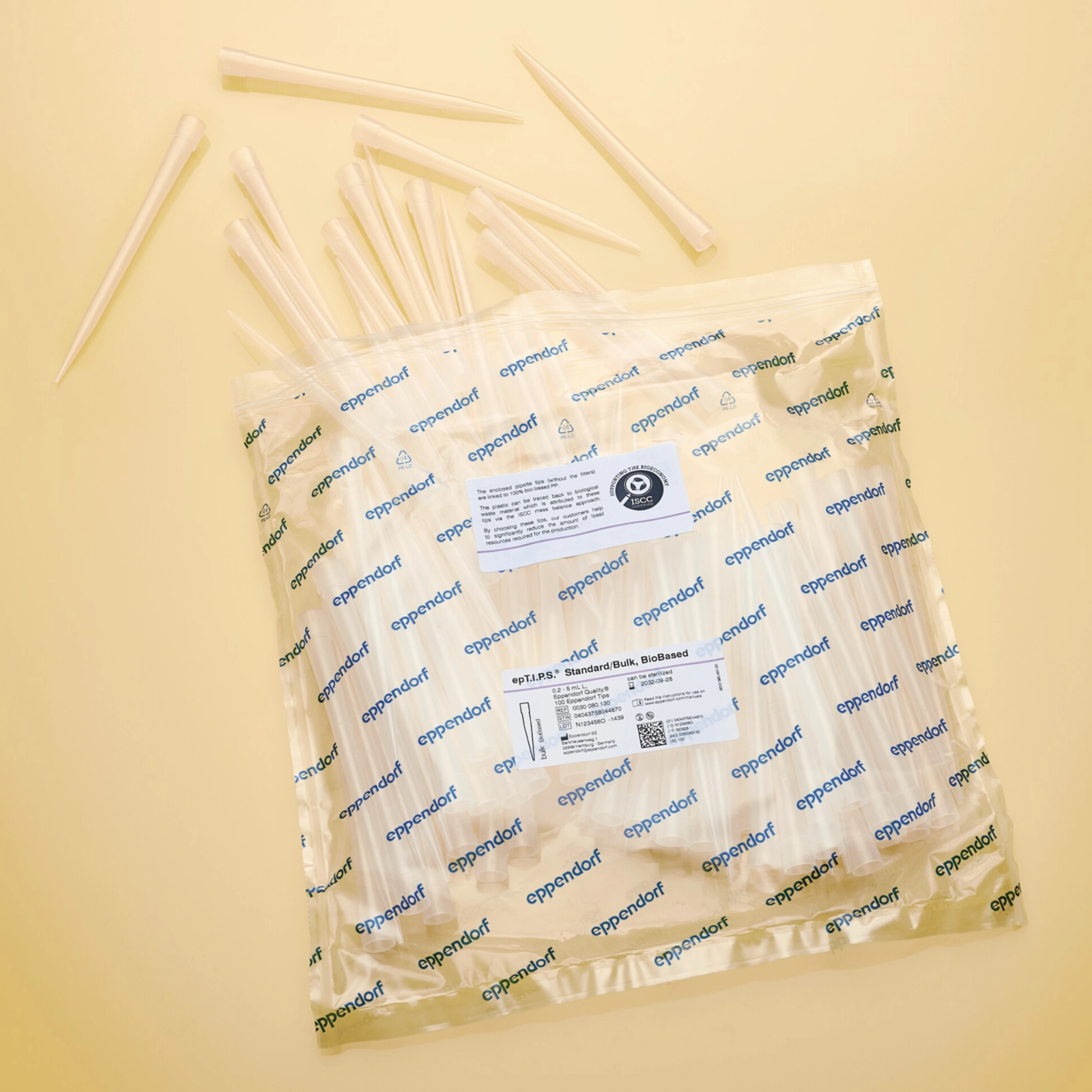 Końcówki epT.I.P.S.® BioBased wyróżniają się doskonałym dopasowaniem do pipet Eppendorf. Zapewniają doskonałą szczelność i precyzyjne osadzenie na stożku pipety. Dostępne w rozmiarach od 10 µl do 5000 µl. Pakowane w worki z możliwością wielokrotnego otwierania i zamykania. Końcówki wykonane są z biopolimeru drugiej generacji. Stopień czystości Eppendorf Quality.