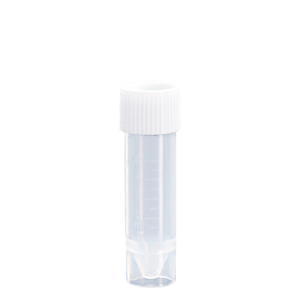 Przezroczyste probówki wykonane z PP lub PS ze stożkową podstawą, o pojemności roboczej 3,5 lub 5 ml. Samostojące, z zakrętką wykonaną z HDPE.