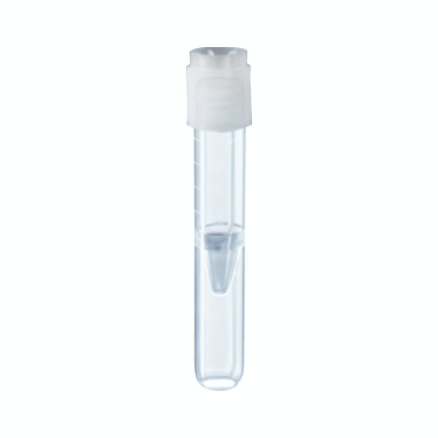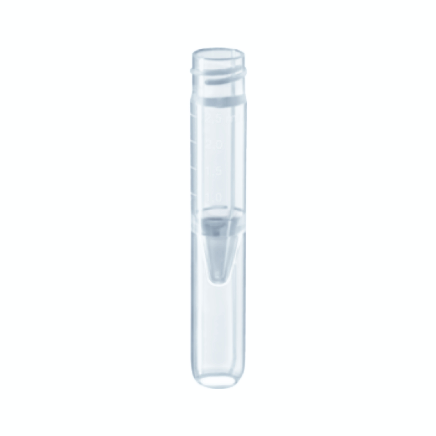Przeźroczyste probówki z fałszywym zaokrąglonym dnem wykonane z PP. Przy wysokości 75 mm i średnicy wewnętrznej 13 mm ich pojemność robocza wynosi 2,5 ml. Przeznaczone do próbek o niewielkiej objętości i zautomatyzowanych procesów analitycznych w laboratoriach. Posiadają skalę. Dostępne w wersji z zakrętką lub bez.