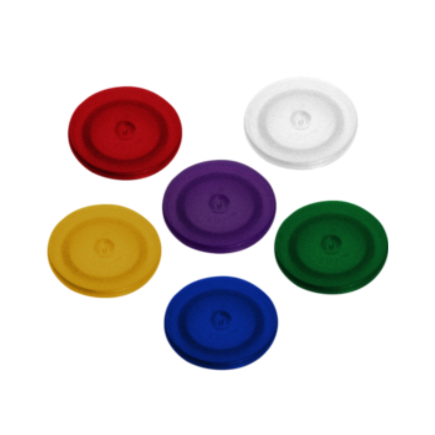 Płatki do kodowania kolorami zakrętek w probówkach o średnicy 16,5 mm.