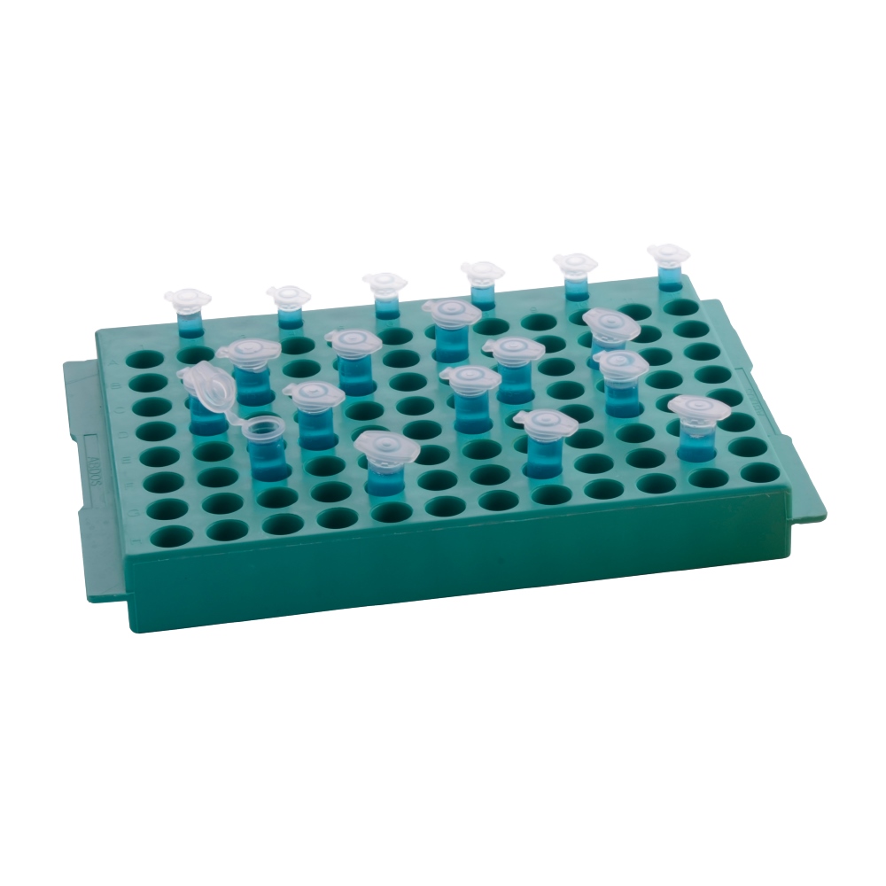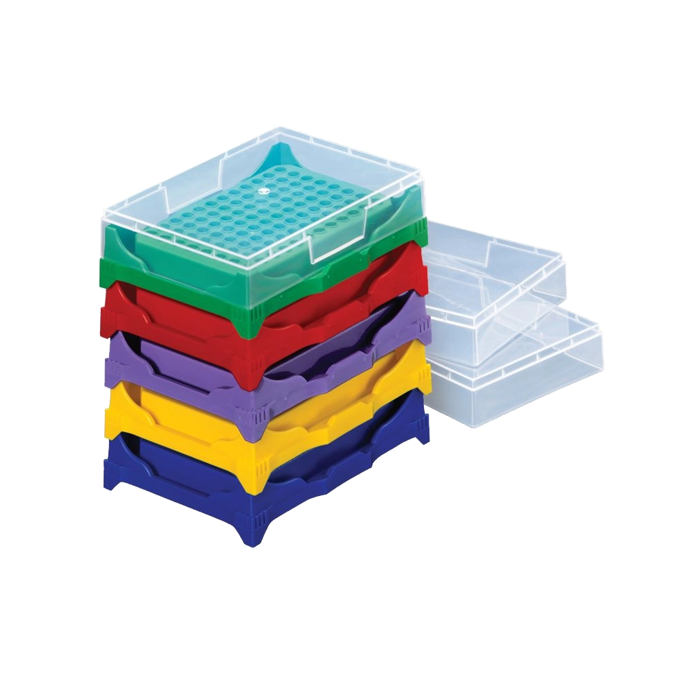 Statywy do probówek PCR z 96 miejscami w formacie mikropłytki. Wykonane z PP. Mogą służyć jako stacja robocza i magazynowa dla pojedynczych probówek 0,2 ml, pasków i segmentów PCR. Autoklawowalne, dostępne w pięciu kolorach. Oferowane w opakowaniach po 10 sztuk.
