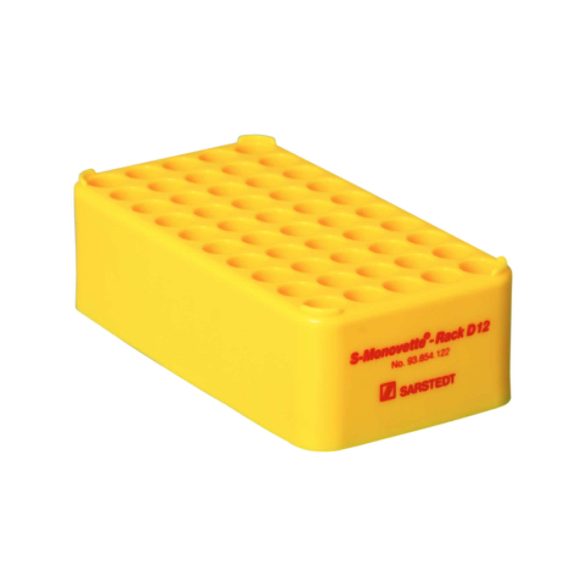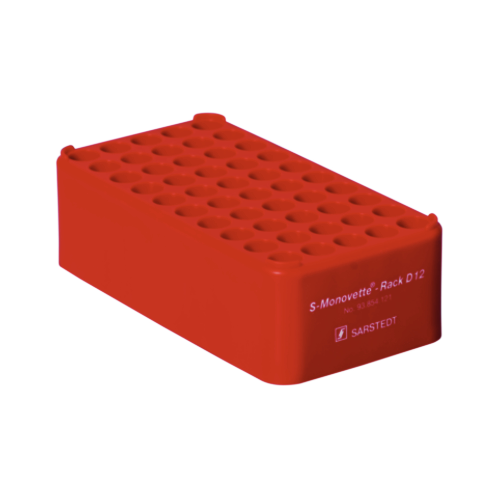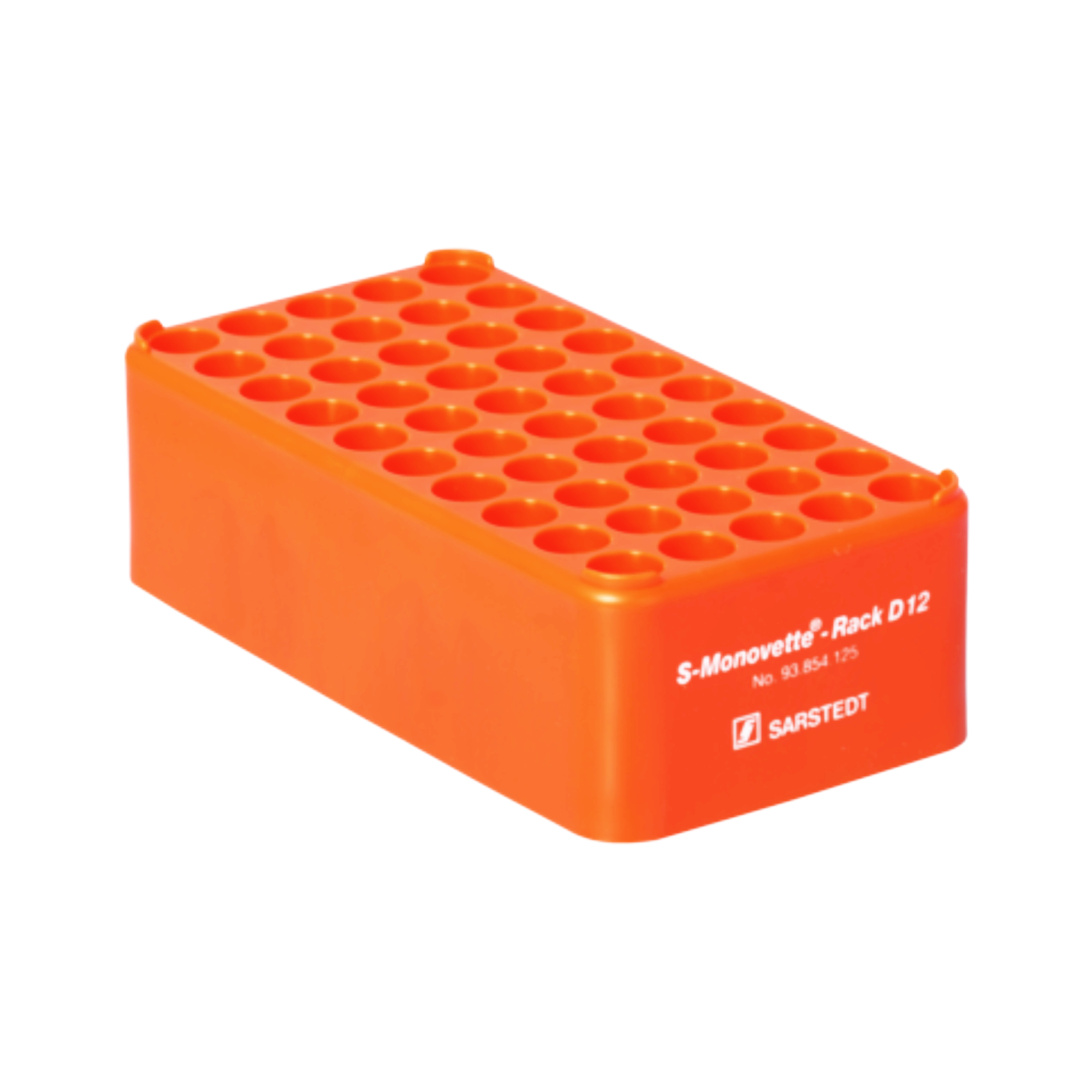 Statywy D12 firmy Sarstedt na 50 probówek o średnicy do 12 mm lub probówko-strzykawek S-Monovette® o średnicy do 11 mm. Wykonany z PP, dostępny w różnych wariantach kolorystycznych.