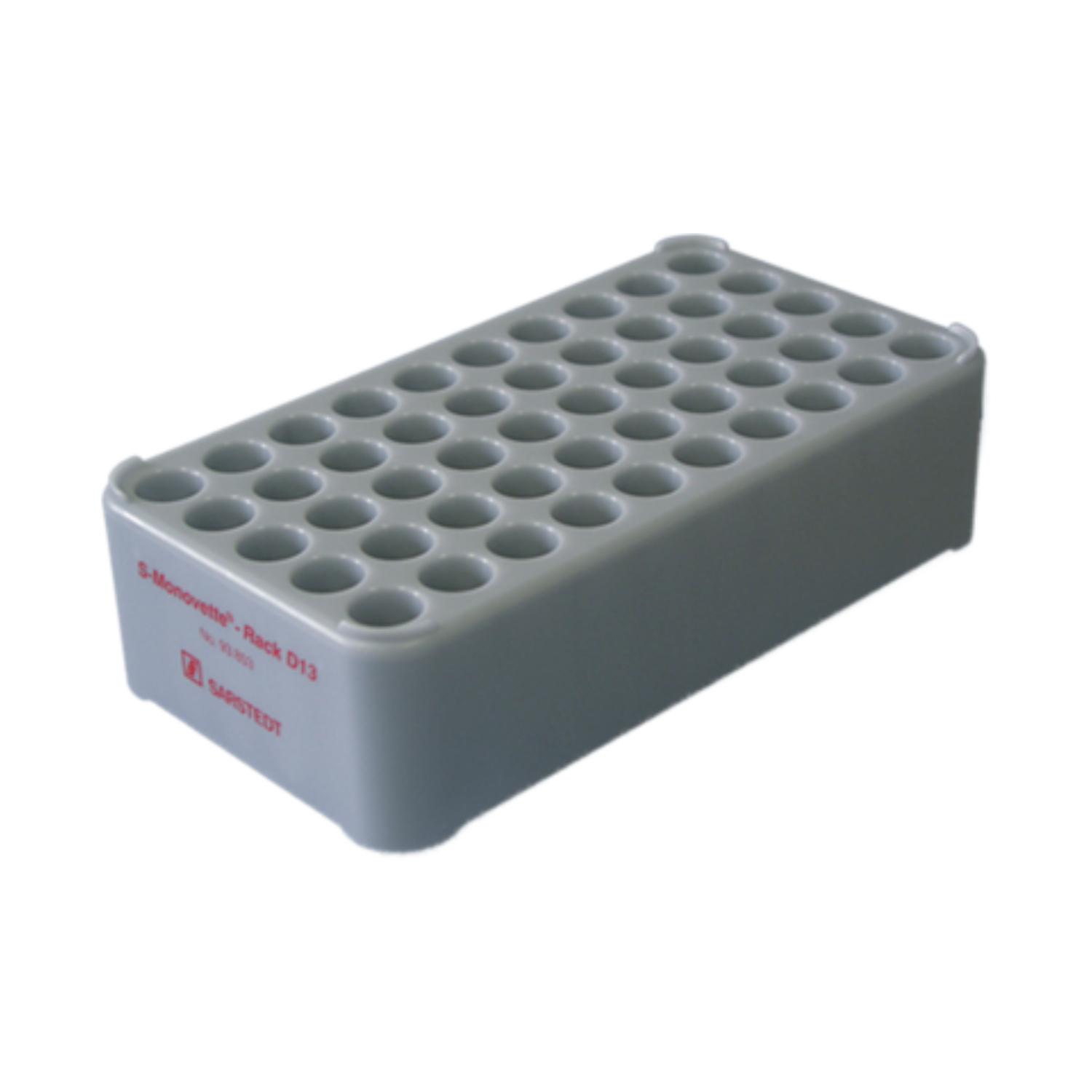 Uniwersalne statywy D13 firmy Sarstedt mają miejsca na 50 probówek lub probówko-strzykawek S-Monovette® o średnicy od 8 do 13 mm. Wykonane z PP. Dostępne w sześciu wariantach kolorystycznych.