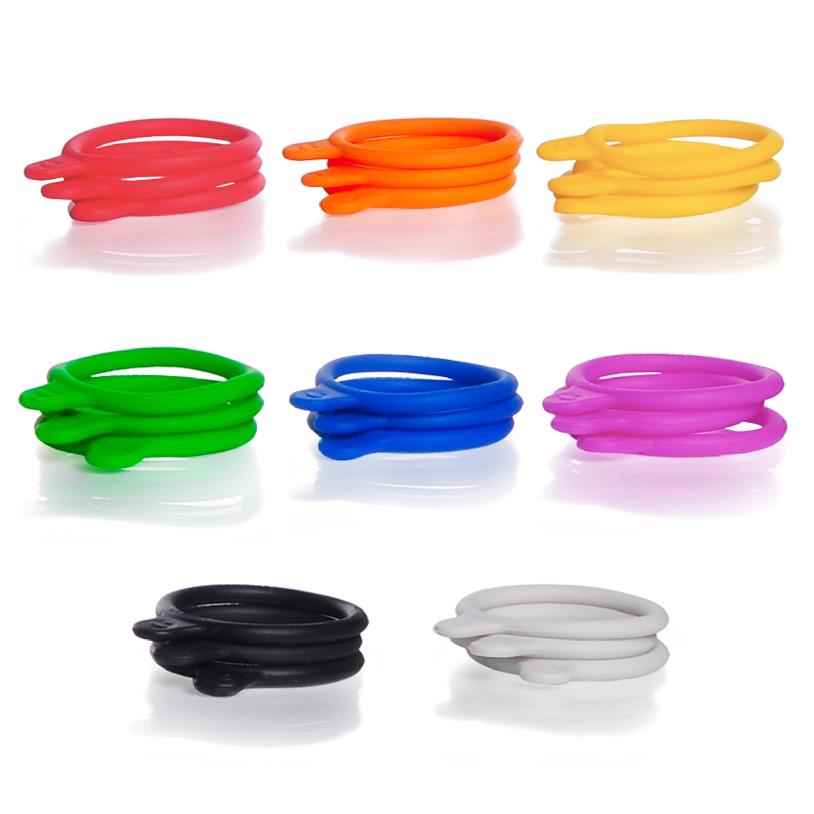 Znaczniki do butelek Duran® Youtility wykonane z silikonu. Osiem wariantów kolorystycznych przywieszek służących do oznaczania butelek laboratoryjnych i ich łatwiejszej identyfikacji. Oferowane w zestawach jednobarwnych po 20 sztuk lub komplecie 16 znaczników, po dwa w każdym kolorze.
