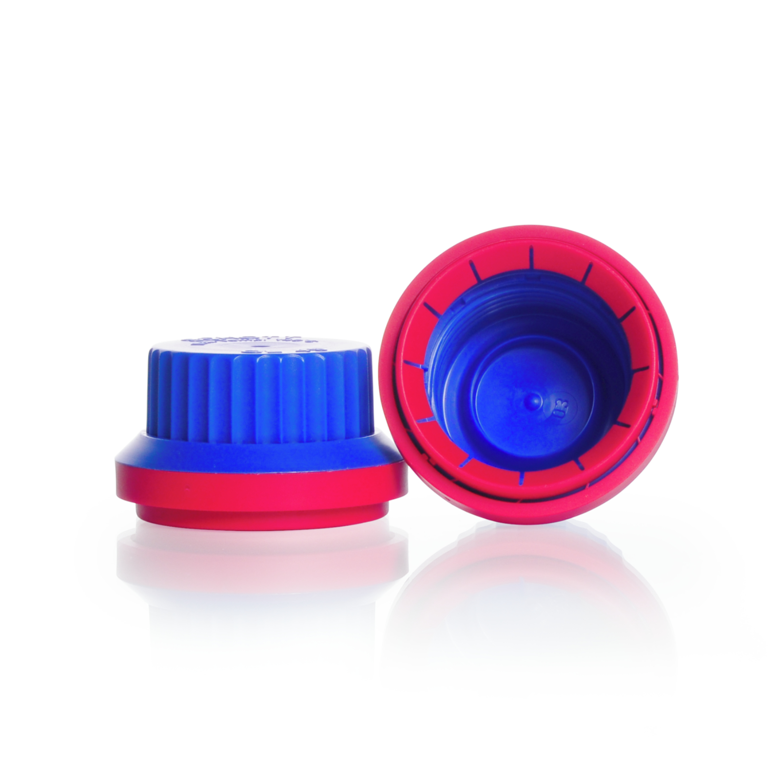 Zakrętki wykonane z PBT z silikonową uszczelką powlekaną PTFE bez pierścieni wylewowych. Odporne na temperatury od -45 °C do +180 °C. Przeznaczone do laboratoryjnych butelek szklanych Duran oraz probówek lub kolb Erlenmeyera z gwintem Duran.
