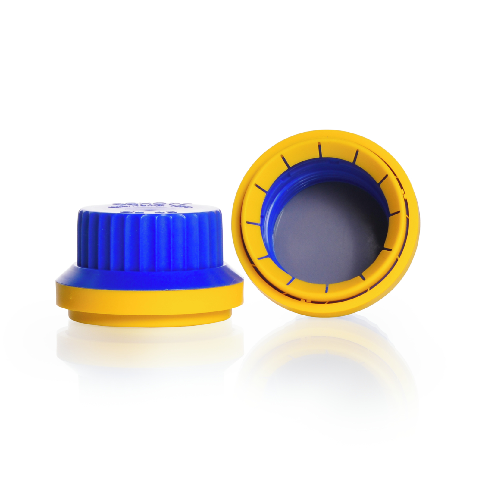 Zakrętki i pierścienie wylewowe z PP dostępne w 5 różnych kolorach. Gwint GL 45. Możliwość autoklawowania do temperatury 140 °C. Wyraziste kolory ułatwiają szybkie rozróżnianie przechowywanych próbek.