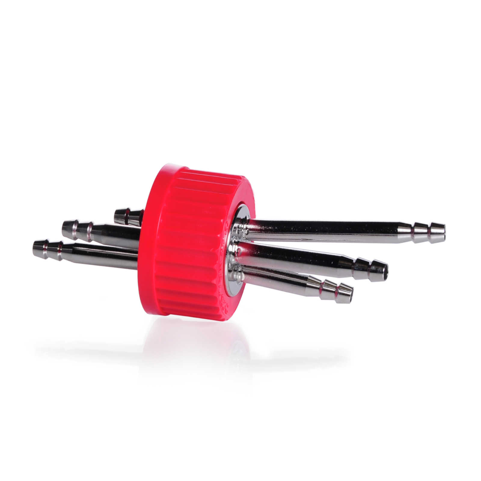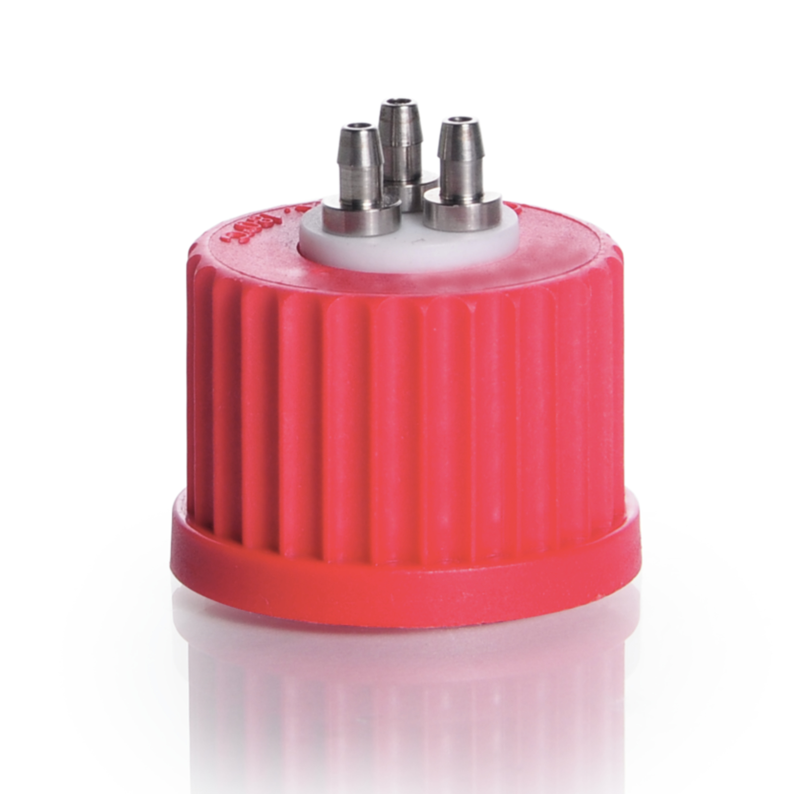 Zakrętki wykonane z PBT z 2, 3 lub 4 portami ze stali nierdzewnej. Do łączenia węży laboratoryjnych z butelkami GL 25. Dopuszczone do kontaktu z żywnością. Odporne termicznie i chemicznie. Autoklawowalne w 121 lub 134 °C.
