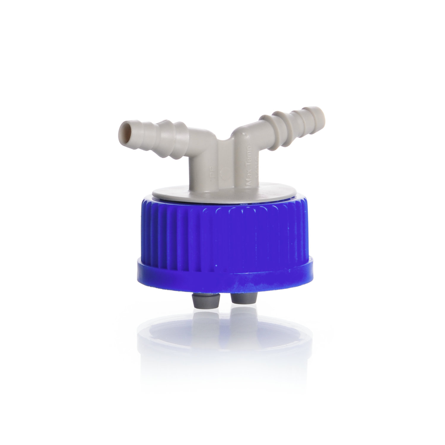 Zakrętki wykonane z PBT z 1, 2 lub 3 portami ze stali nierdzewnej. Do łączenia węży laboratoryjnych z butelkami GL 45. Dopuszczone do kontaktu z żywnością. Odporne termicznie i chemicznie. Autoklawowalne w 121 lub 134 °C. Oferowane pojedynczo.