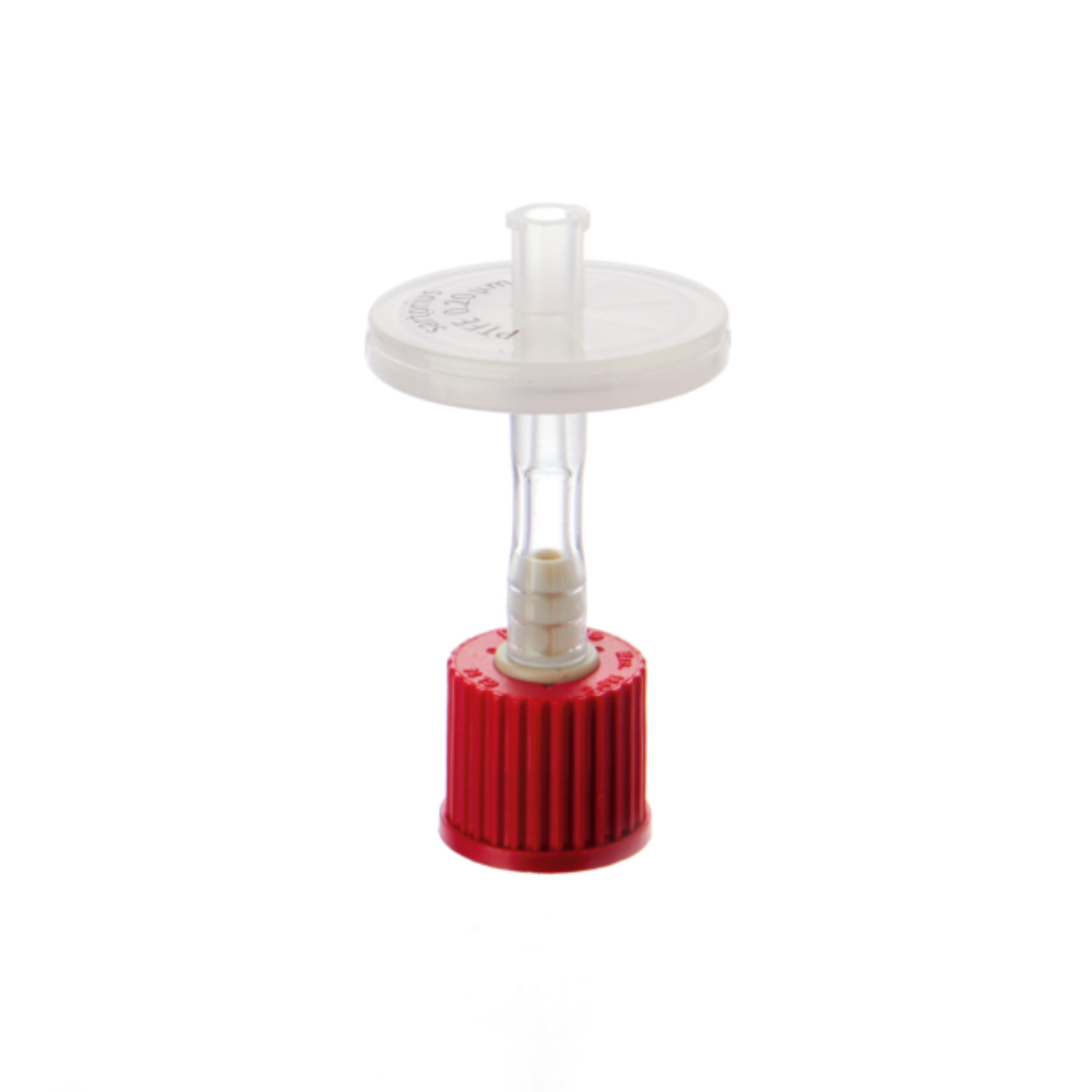 Zestaw do wyrównywania ciśnienia przeznaczony do zakrętek Duran z PP z 4 portami GL 18 (G-0418). Składa się z czerwonej zakrętki z PBT z gwintem GL 18 oraz filtra strzykawkowego o śr. porów 0,2 µm. Zestaw można sterylizować.