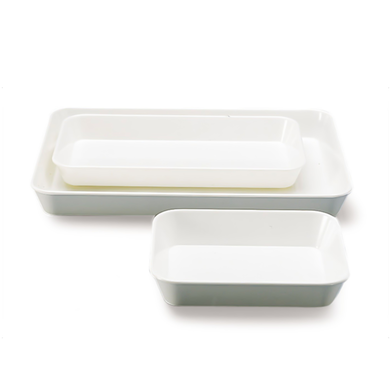 Kuwety laboratoryjne wykonane z polipropylenu. Mogą służyć zarówno do celów laboratoryjnych jak i do przechowywania rozmaitych przedmiotów. W kolorze białym. Posiadają grzbiety na dnie.