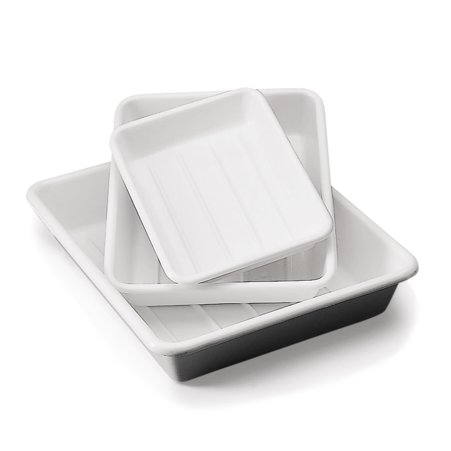 Wanienki służące do dezynfekcji i czyszczenia narzędzi laboratoryjnych. Uniwersalny rozmiar na różne instrumenty. Wykonane z tworzywa sztucznego.