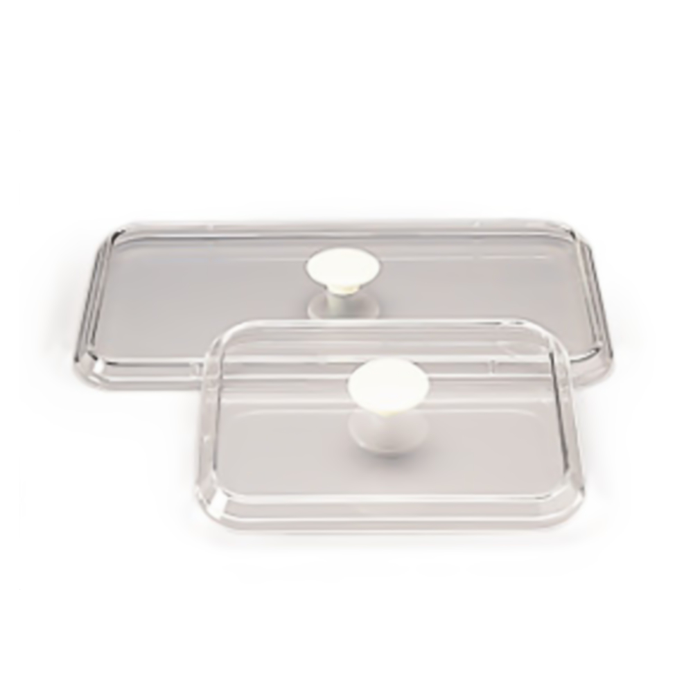 Tace i pokrywki wykonane są z nierdzewnej stali szlachetnej 18/8. Zaokrąglony spód umożliwia łatwe utrzymanie czystości i dezynfekcję. Pokrywka posiada rączkę. Można ustawiać jedne na drugich. Autoklawowalne.
