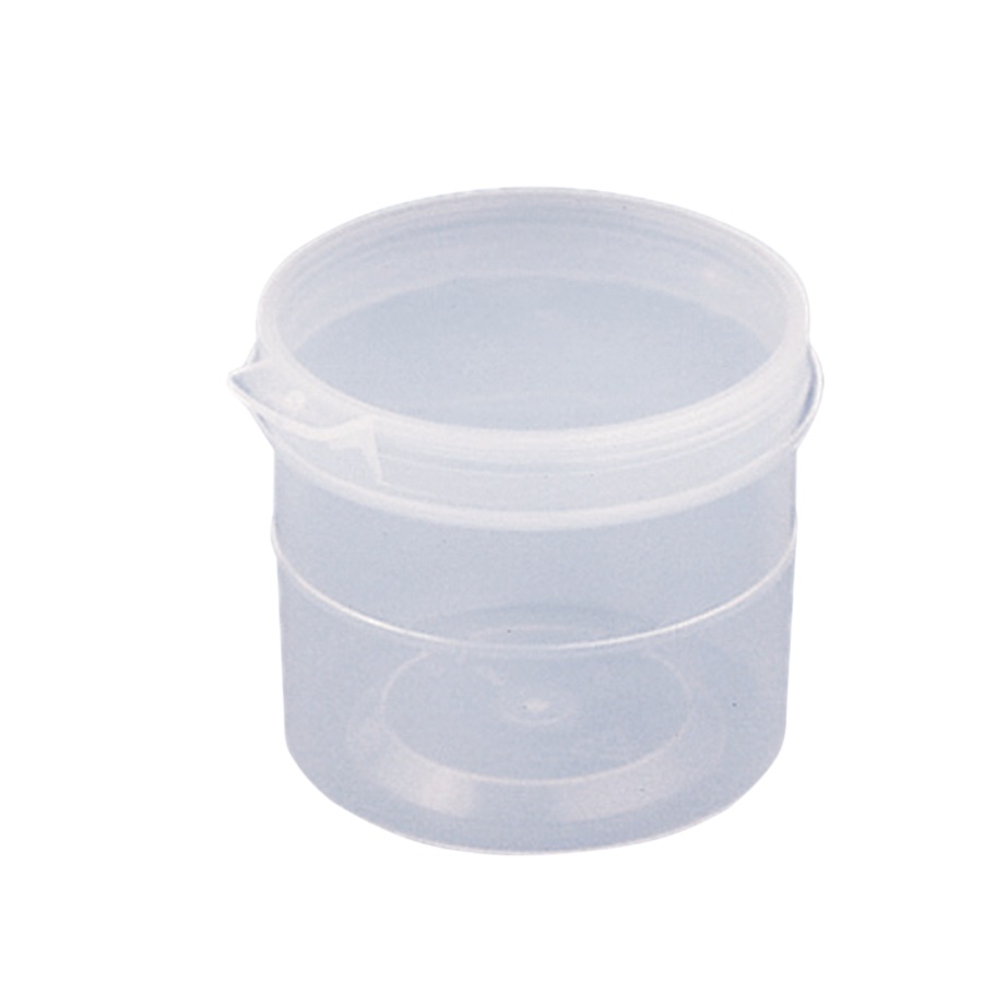Pojemniki okrągłe ze szczelnie zamykającą pokrywką. Wykonane z przeźroczystego polistyrenu. Służą do przechowywania próbek. Odporne na temperatury od -40°C do +75°C. Opakowanie zawiera 10 sztuk.