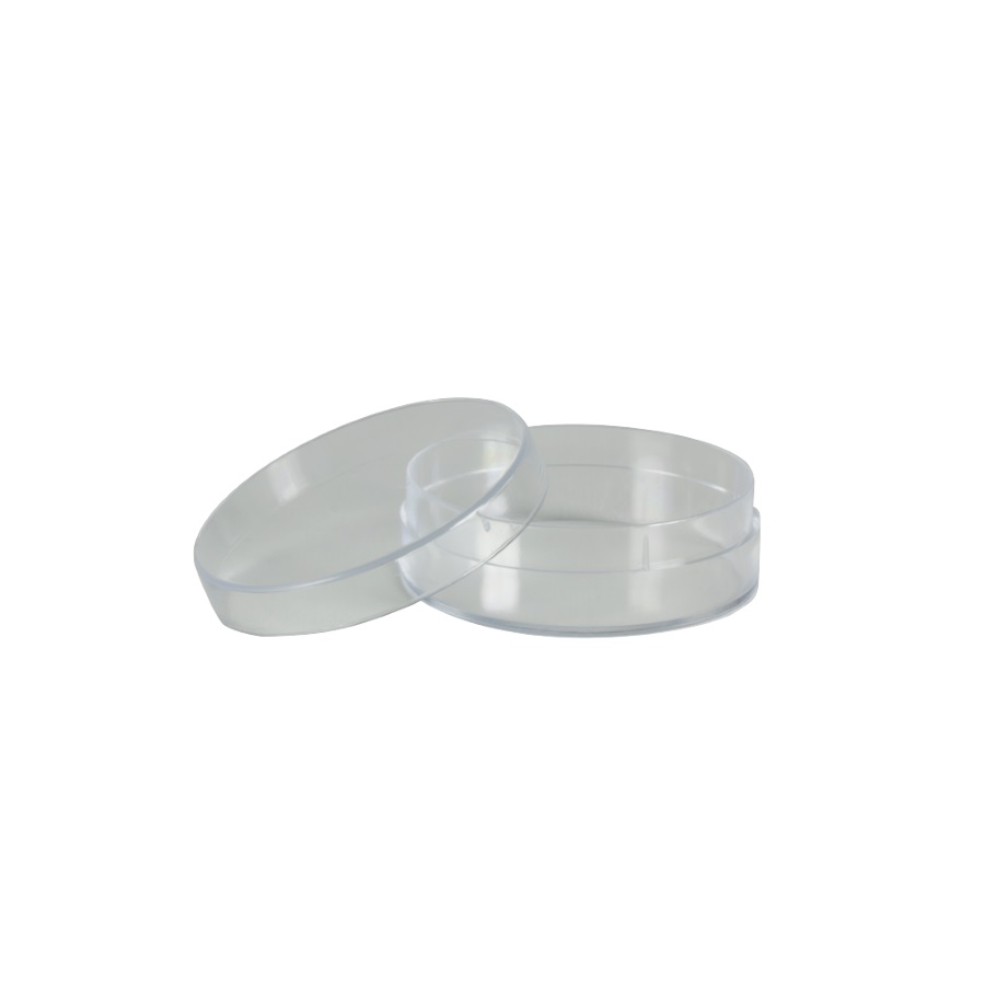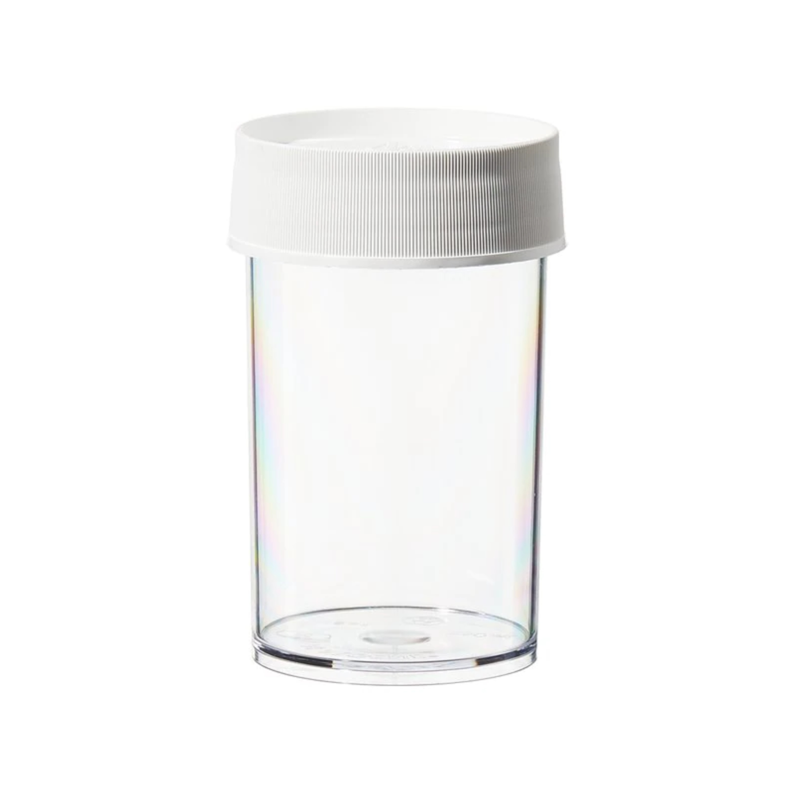 Pojemniki o płaskim dnie wykonane z bezbarwnego PS w komplecie z brązowymi korkami (push cap) z HDPE. Od wewnętrznej strony zatyczki przymocowana jest łyżeczka przydatna przy pobieraniu lub przenoszeniu próbki. Dostępna wersja niesterylna i sterylna.