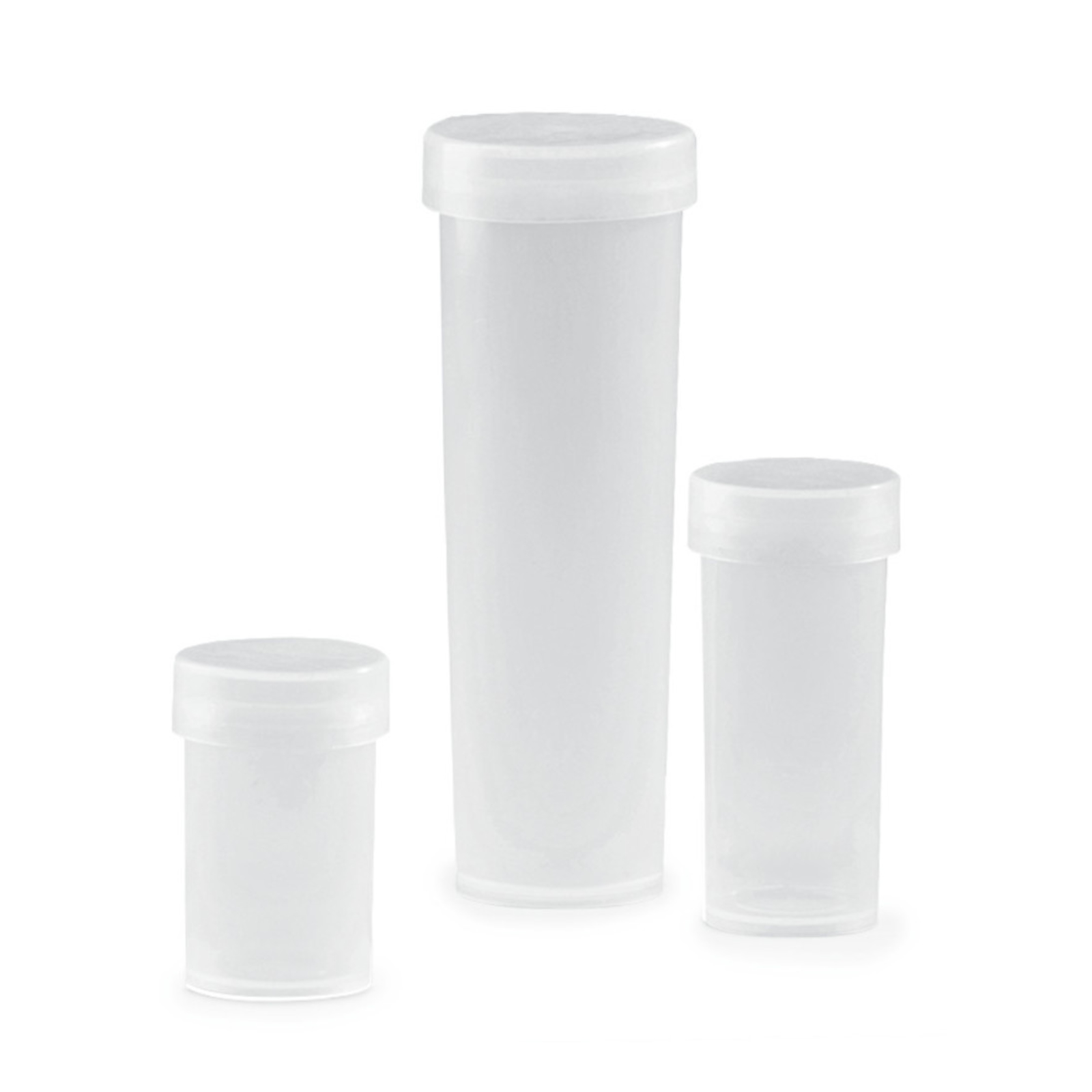Pojemniki do przechowywania i zamrażania próbek. Wykonane z polietylenu wysokiej jakości (pokrywa z LDPE, naczynie z HDPE). Możliwość układania w stosy. Odporne na temperatury od -40°C do +95°C.