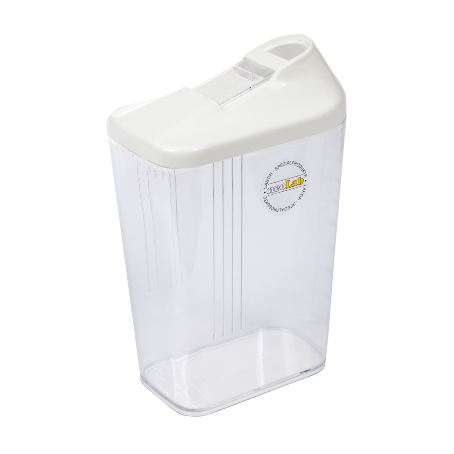 Wygodny w użyciu pojemnik przeznaczony do przechowywania proszków, granulatów i cieczy. Przesuwane zamknięcie gwarantuje hermetyczność i pyłoszczelność. Pojemnik wykonany jest z polistyrenu, pokrywka z polietylenu.