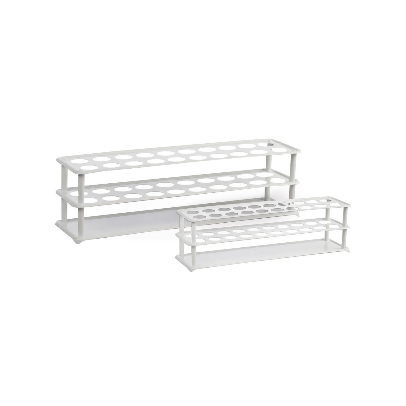 Blaszane statywy do probówek, wykonane ze stali, lakierowane elektrostatycznie.