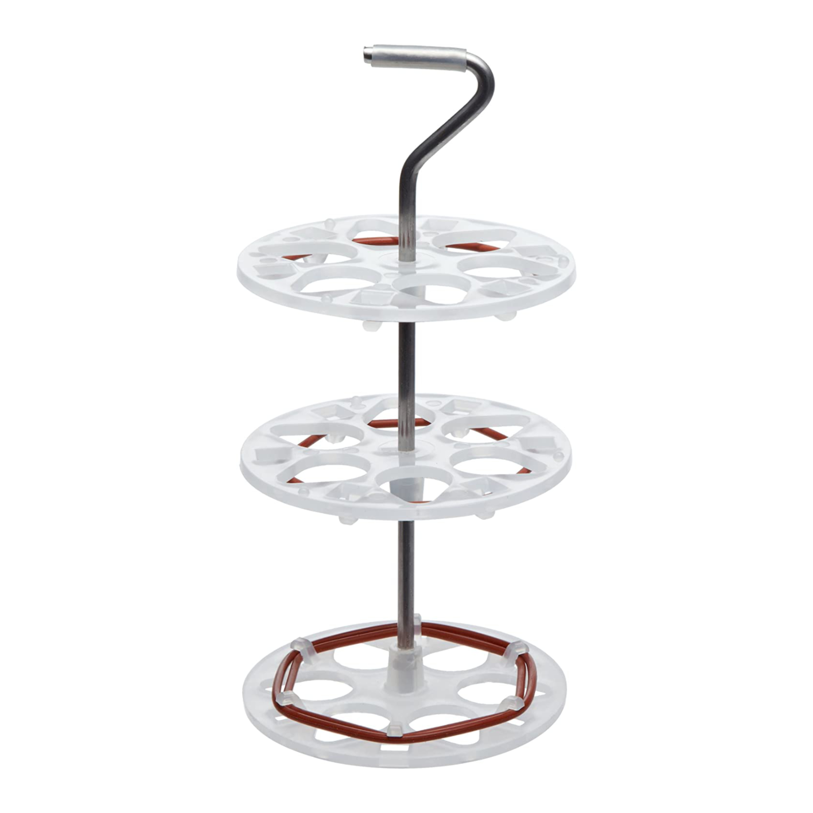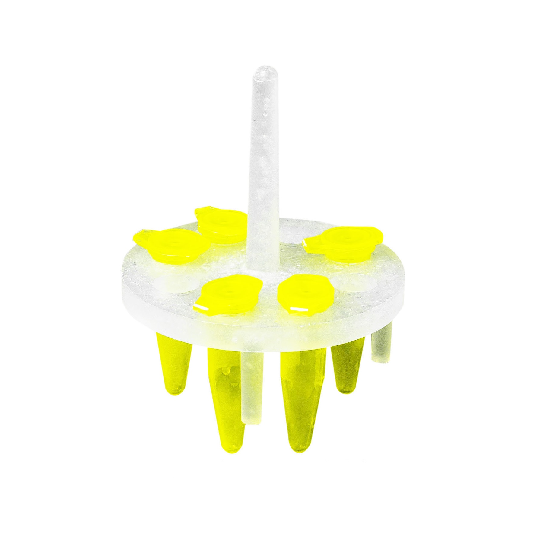 Stojak z polipropylenu do bezpiecznego inkubowania sześciu probówek o poj. 1,5 ml do 15 ml w łaźni wodnej lub zlewce o dowolnej wysokości. Wyposażony w solidny uchwyt. Autoklawowalny.