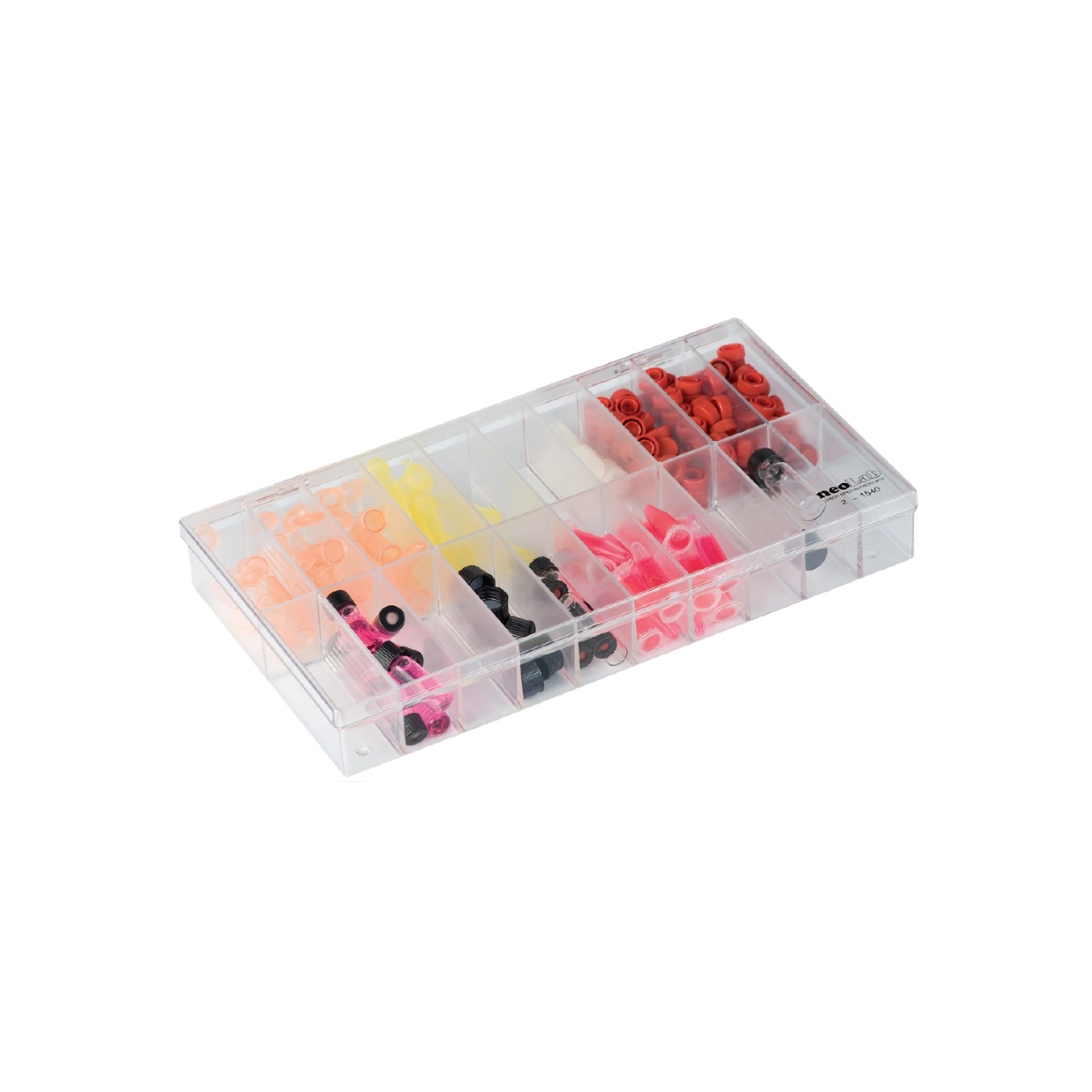 Solidne, wysokiej jakości pojemniki, wykonane z polipropylenu. Idealne do przechowywania i porządkowania drobnego asortymentu laboratoryjnego, takiego jak probówki, końcówki do pipet, nakrętki, kapsle itp. Posiadają przeźroczystą, zatrzaskową pokrywę i możliwość naklejenia etykiety z przodu.