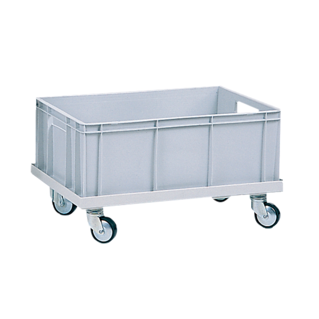 Wózek przydatny do przewożenia wanien, koszy i innych pojemników (600 x 400 mm). Wyposażony w 4 kółka sterujące z gumowymi obręczami. Dostarczany bez pojemników. Pasujące do wózka pojemniki dostępne są pod numerami art. od 2-1144 do 2-1147.