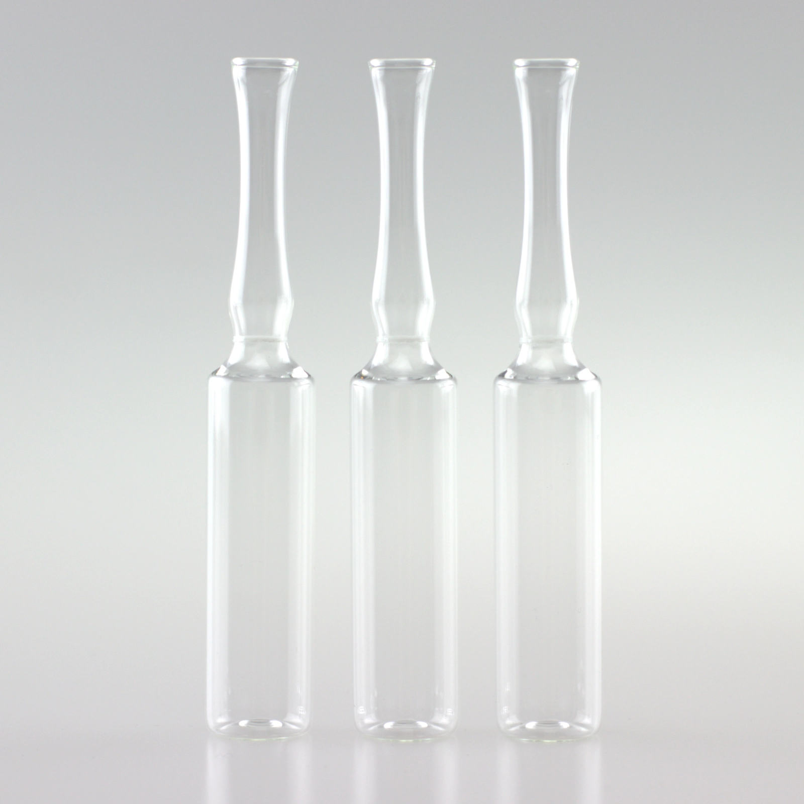 Ampułki ze szkła borokrzemowego, o pojemności 10 ml. Bezbarwne. Otwarte.