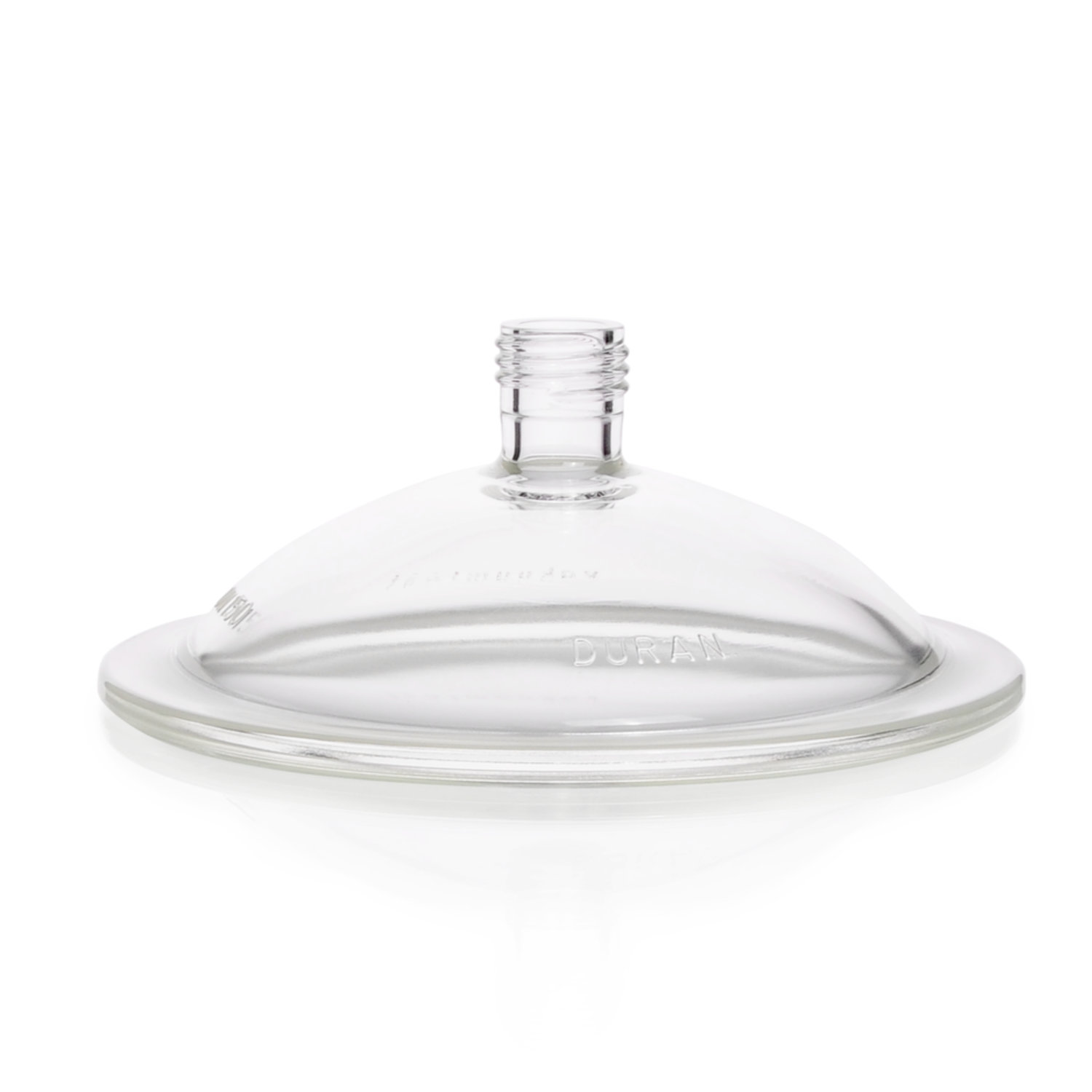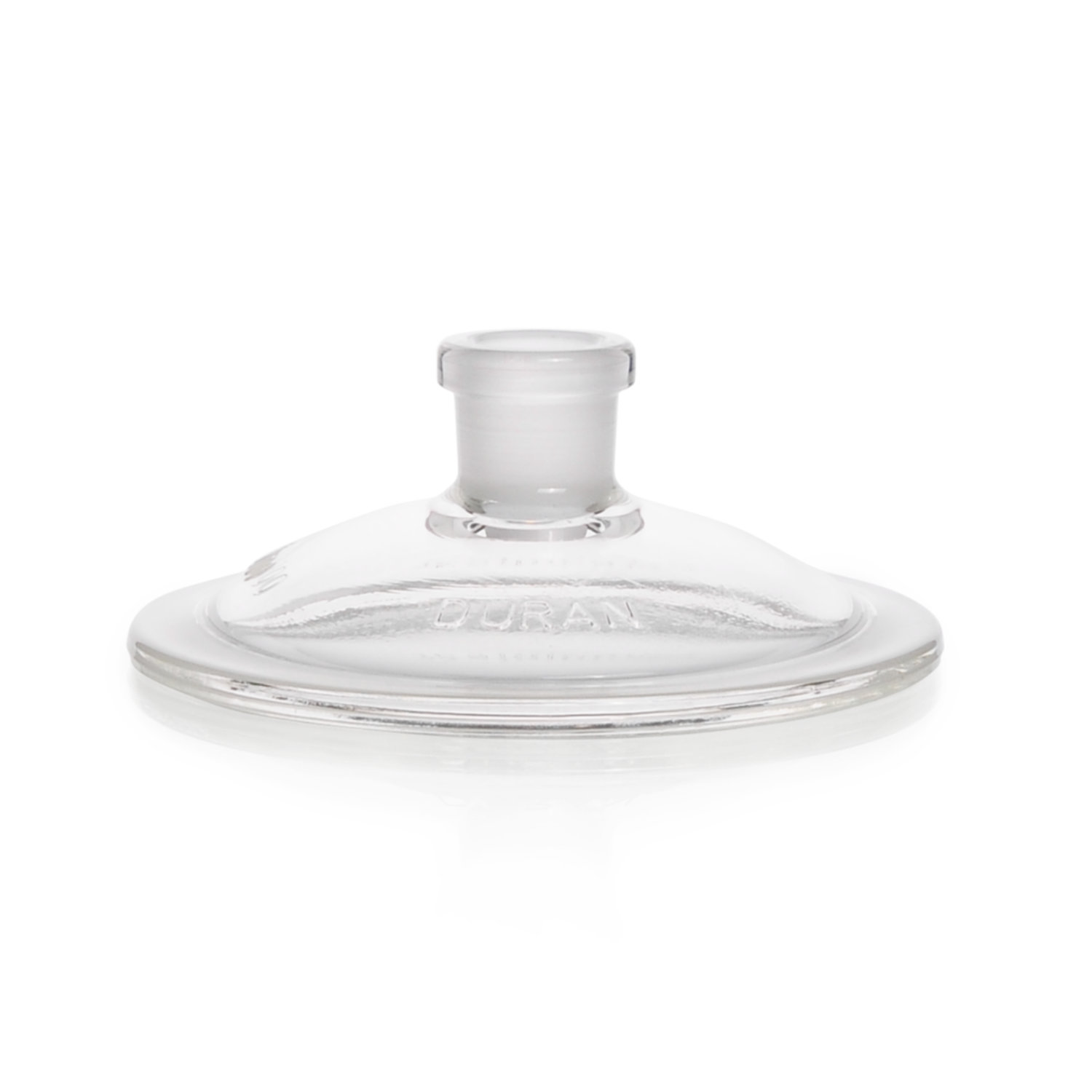 Pokrywa eksykatora ze szkła Duran z płaskim, szlifowanym kołnierzem. Wyposażona w tubus typu Mobilex z gwintem GL 32. Wykonana ze szkła borokrzemowego 3.3. Pasuje do wszystkich podstaw eksykatorów Duran. Dostarczana bez zaworu zamykającego.