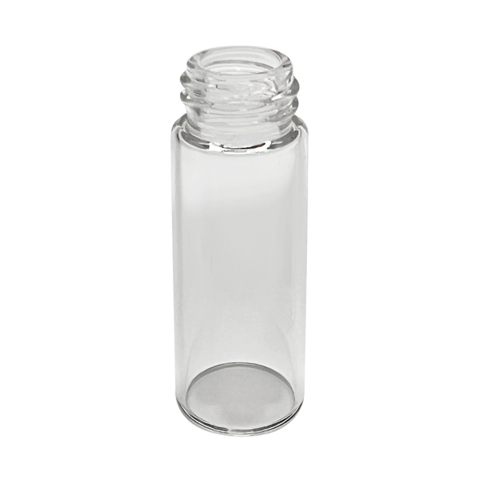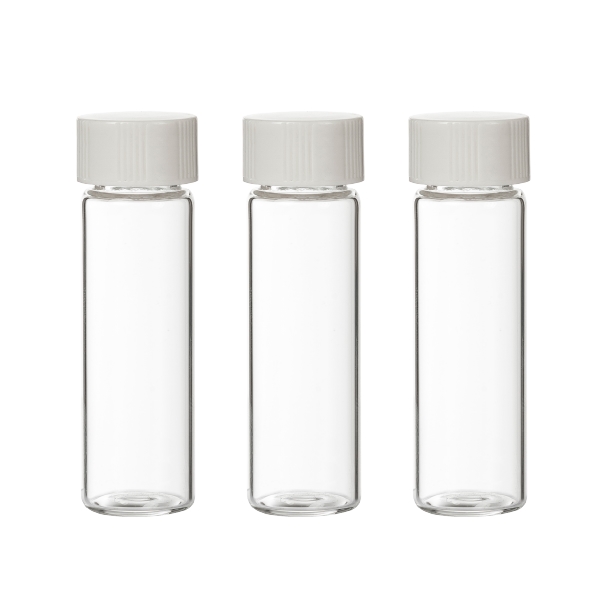 Wykonane z przeźroczystego szkła borokrzemowego Typ I (5.1). Z zakrętkami gwintowanymi, wyposażonymi w septy butyl/PTFE. Odporne na temperatury do 110°C.