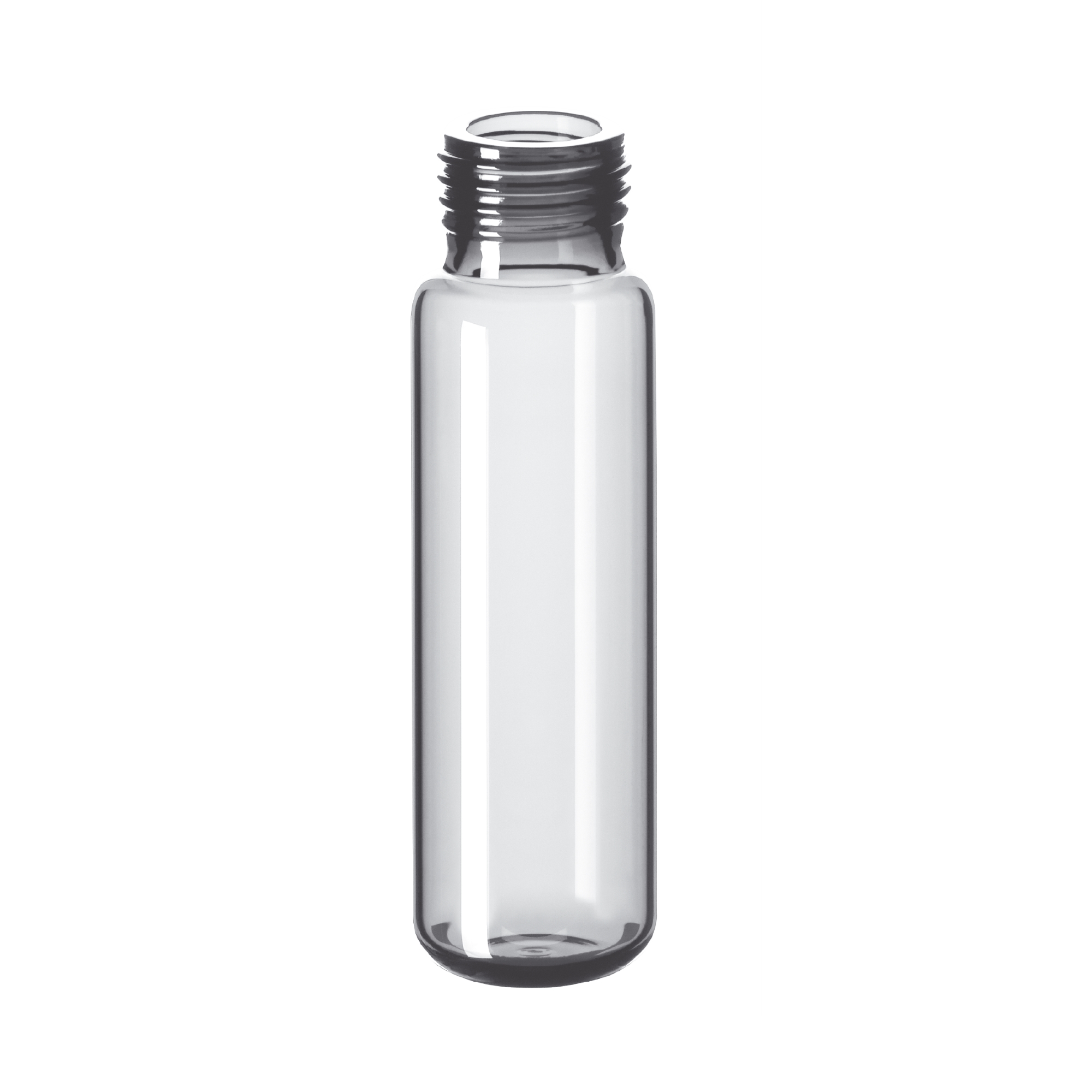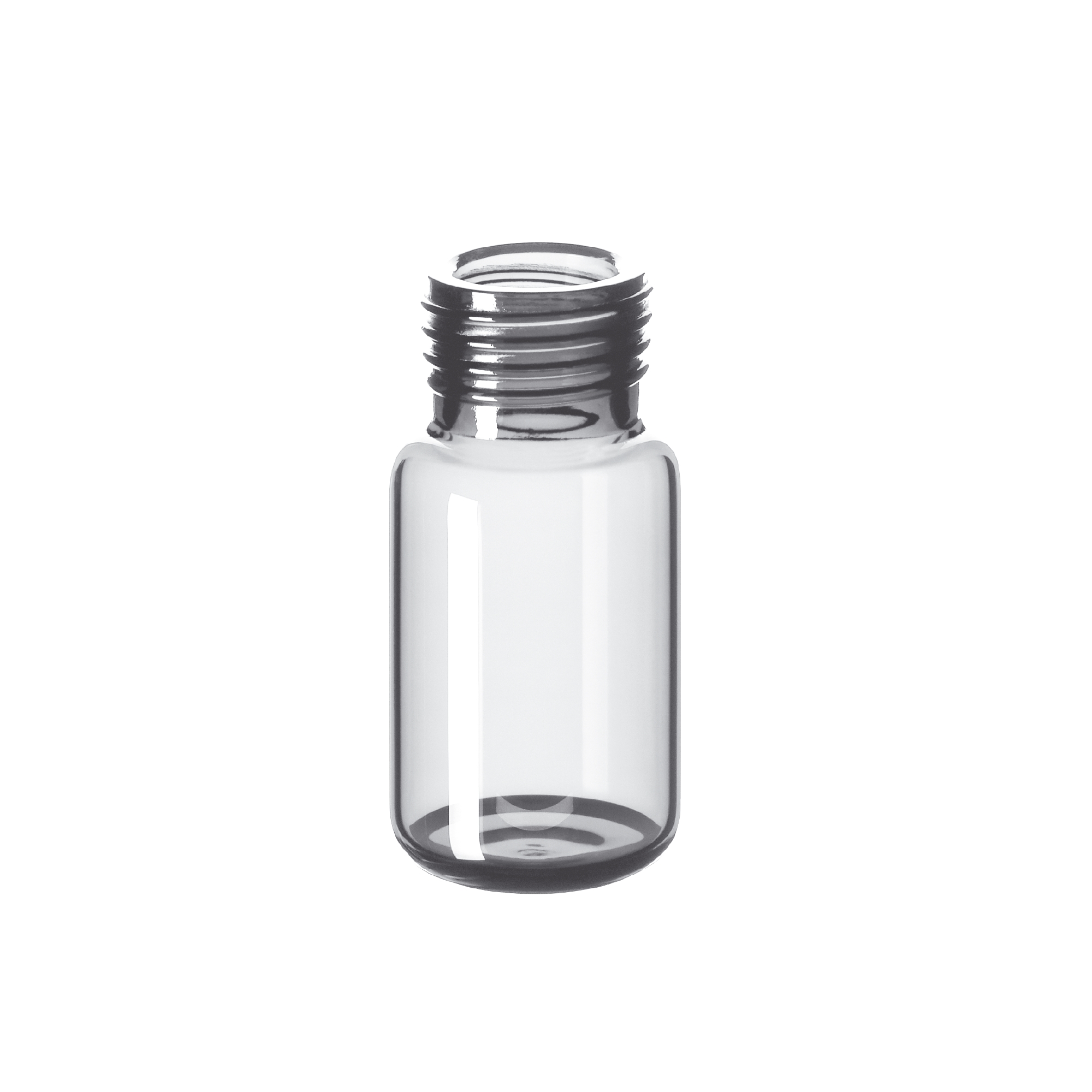 Fiolki z drobnym gwintem. Wykonane ze szkła 1. klasy hydrolitycznej. Z okrągłym dnem.