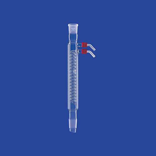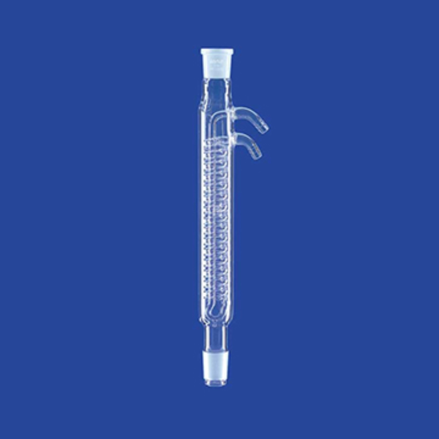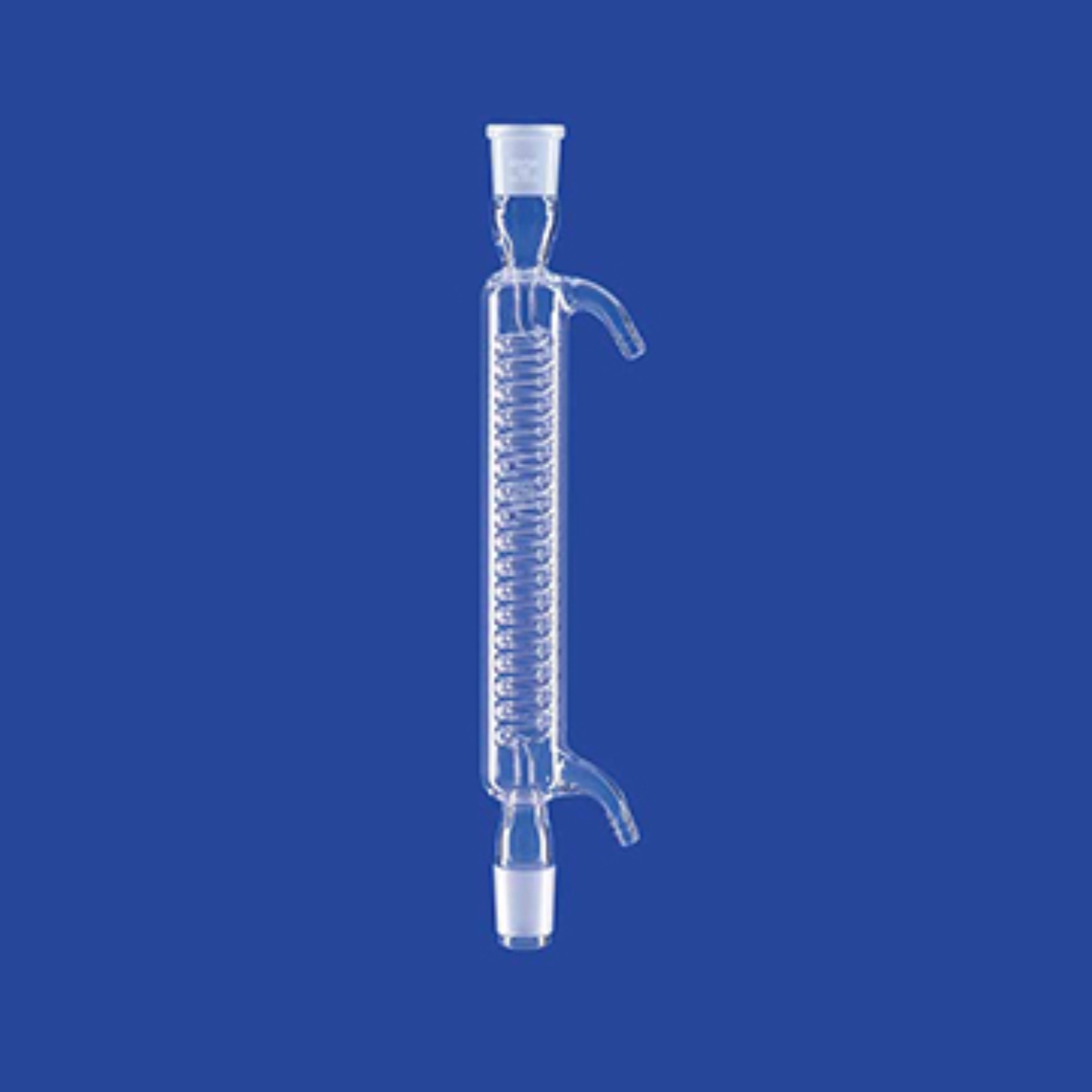 Chłodnice spiralne z dodatkowym płaszczem chłodzącym oraz z dwoma szlifami NS wg DIN 12 593. Wykonane ze szkła borokrzemowego 3.3. Z plastikowymi oliwkami. Gwint GL 14.