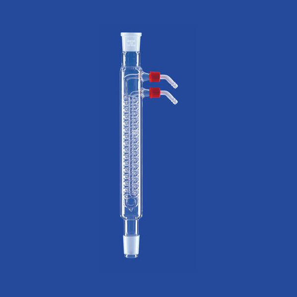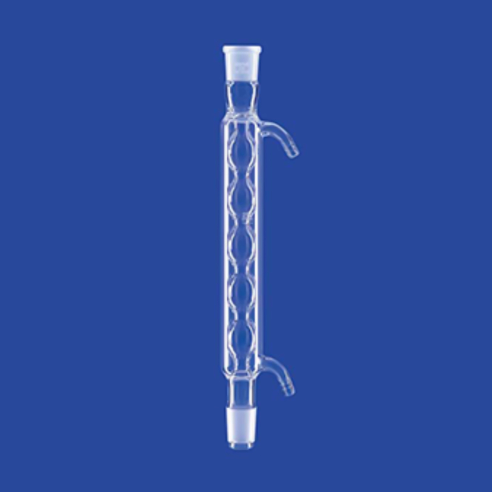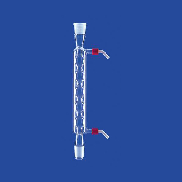 Chłodnice kulkowe Allihna ze szlifami wykonane wg DIN 12 581 ze szkła borokrzemowego, 3.3. Z plastikowymi oliwkami z gwintem GL 14 lub z dwoma oliwkami szklanymi.