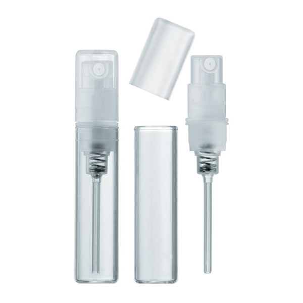 Rozpylacz do różnorodnych zastosowań, o bardzo małej objętości. Buteleczka wykonana z bezbarwnego szkła, zaś element spryskujący – z tworzywa sztucznego.