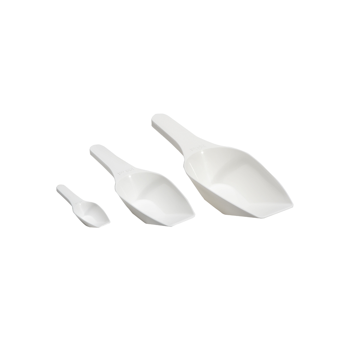 Standardowa szufelka wykonania z białego PP. Do pobierania i dozowania mediów proszkowych.