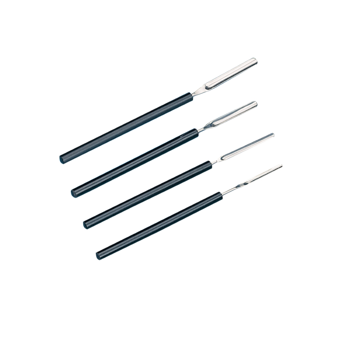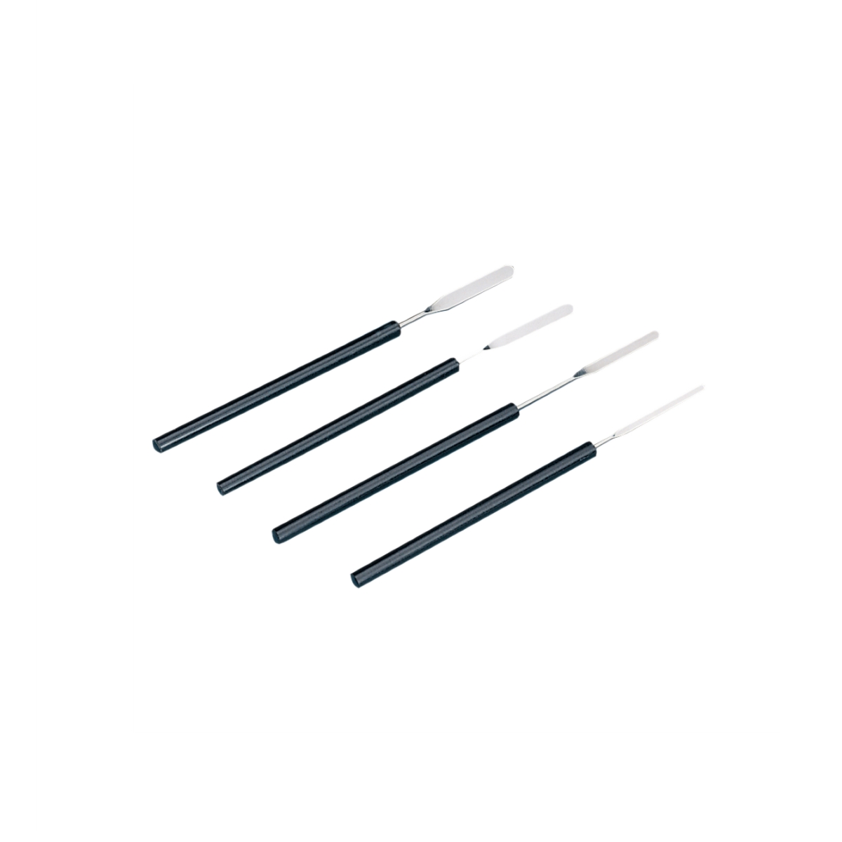 Łopatki z płaskim ostrzem. Wykonane ze stali szlachetnej. Posiadają uchwyt z tworzywa sztucznego wzmocnionego włóknem szklanym. Przeznaczone do najmniejszych ilości substancji proszkowych.