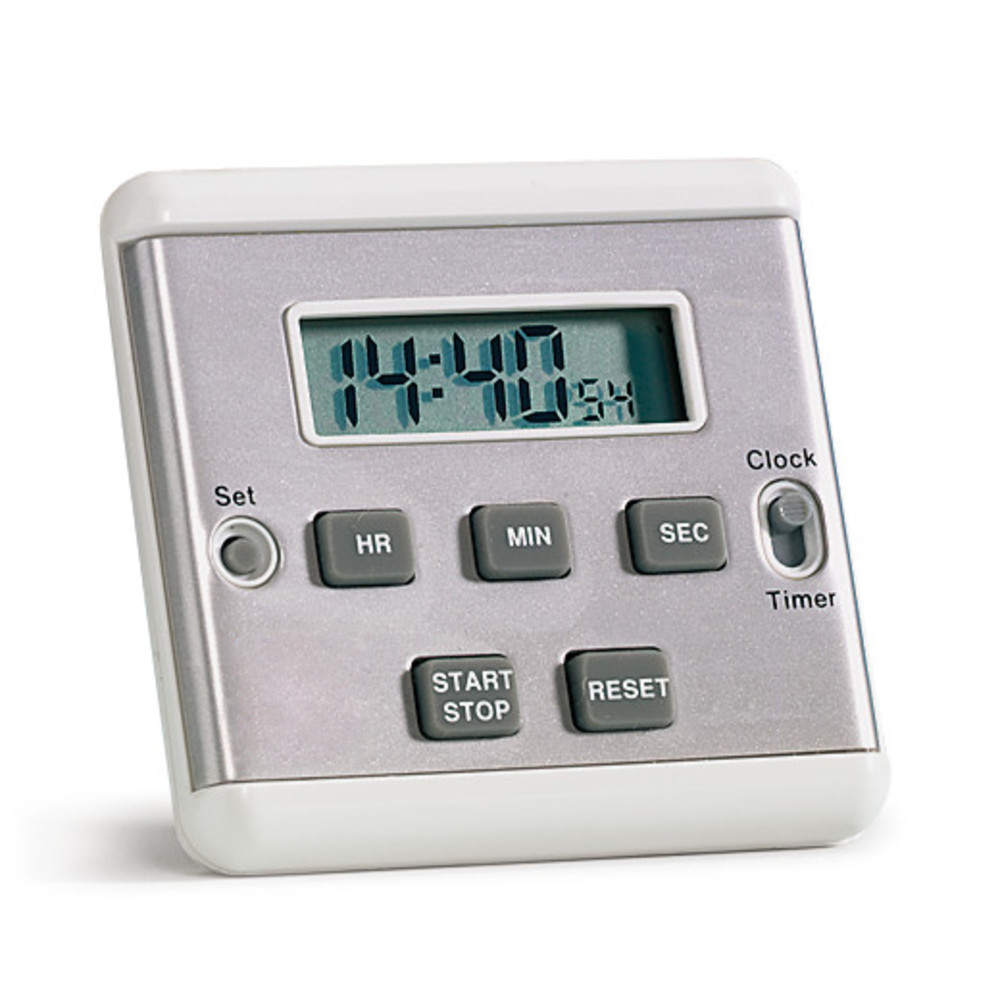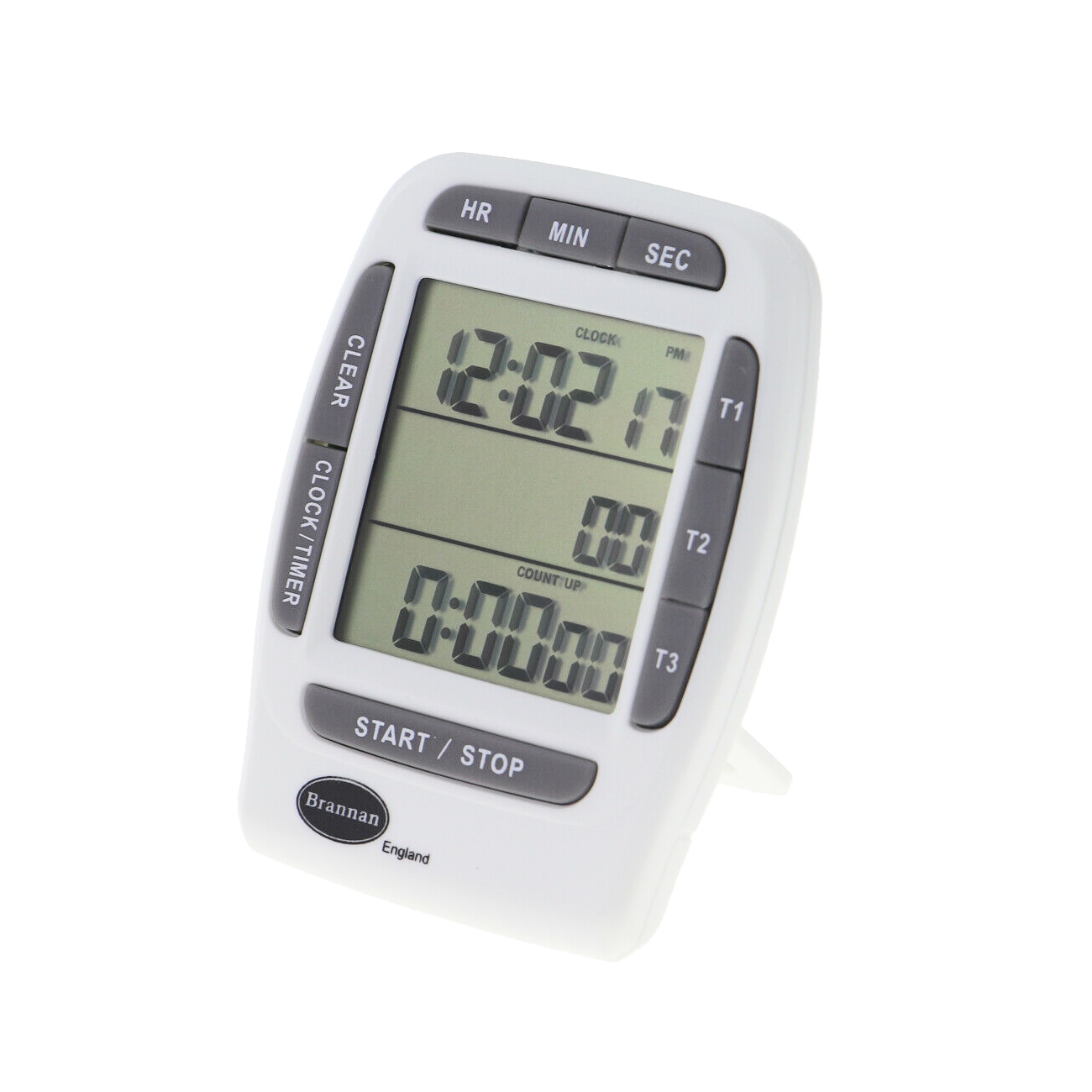 Stoper, czasomierz oraz zegarek w jednym z odliczaniem kończącym się alarmem. W zegarku Brannan ™ z wyświetlaczem LCD, wszystkie trzy timery mogą działać jednocześnie. Tylna część posiada zacisk, podstawę i magnes.