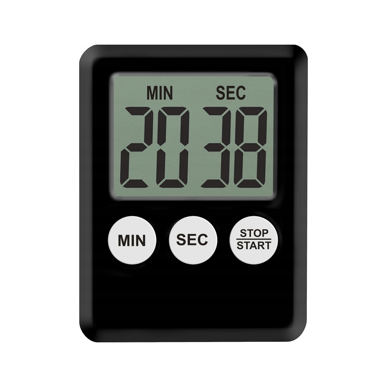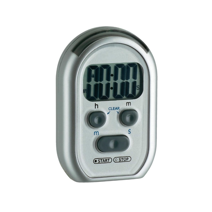 Wygodny, funkcjonalny czasomierz z możliwością wprowadzania czasu za pomocą klawiatury numerycznej. Odliczanie zarówno w przód jak i wstecz. Z dużym, czytelnym wyświetlaczem. Posiada podpórkę, umożliwiającą ustawienie pionowo. Po zakończeniu odliczania czasu emituje sygnał dźwiękowy.