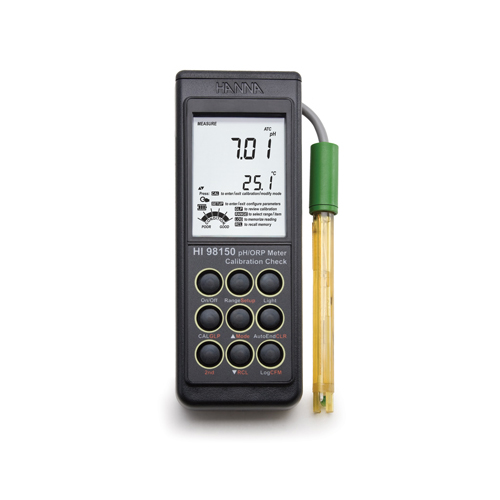 HI 98150 jest przenośnym urządzeniem terenowym, które mozna stosować nawet w niekorzystnych warunkach przemysłowych i atmosferycznych. Gwarantuje wysoką dokładność i pewność pomiarów. Informuje o konieczności nowej kalibracji i wykrywa elektrodę brudną lub w złym stanie, niepozwalającym na dalsze pomiary o jednakowej dokładności.