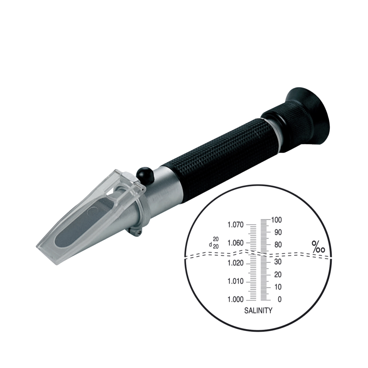 Przeznaczony do pomiaru zawartości soli w roztworach o niskiej koncentracji wg skali tysięcznej (‰). Łatwy w obsłudze, odpowiedni do szybkiego oznaczenia gęstości soli i ciężaru właściwego wody morskiej.