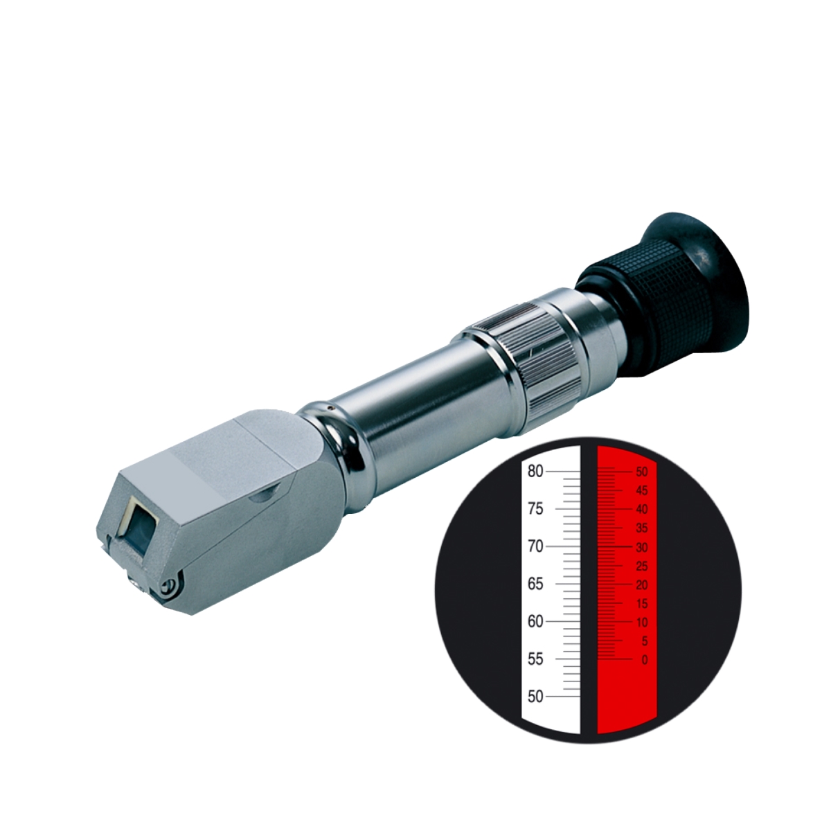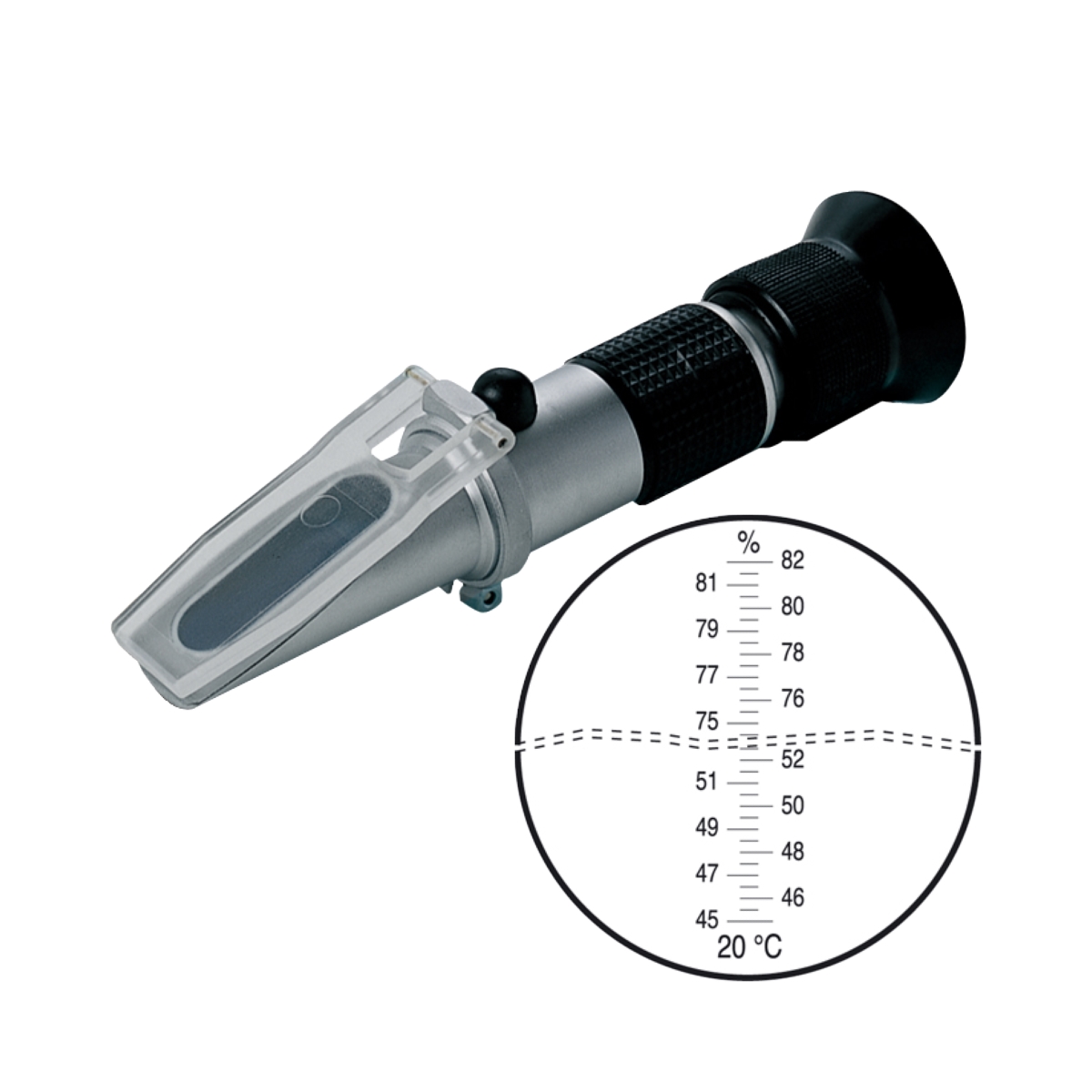 Standardowy refraktometr do mierzenia zawartości cukru w skoncentrowanych sokach owocowych, mleku skondensowanym, płynnym cukrze i marmoladach oraz w bardzo gęstych produktach, takich jak konfitury, syropy, koncentraty, glukoza, melasa.
