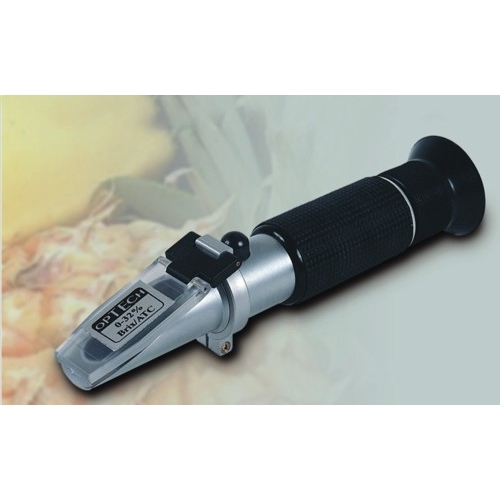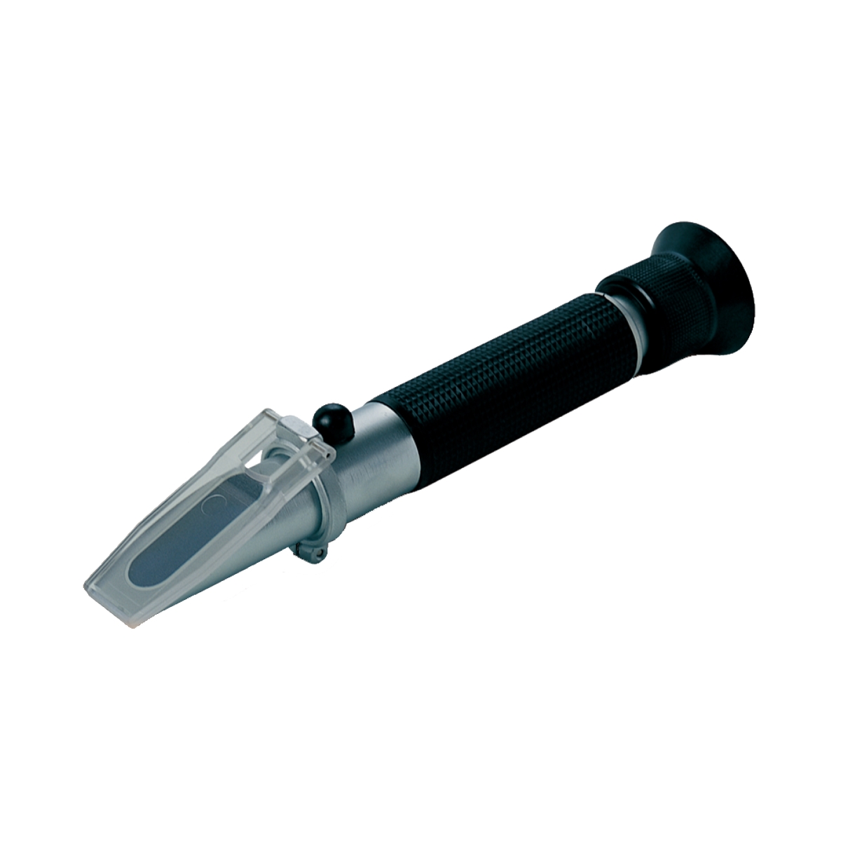 Refraktometr o szerokim spektrum zastosowania. Wyposażony w 3 zakresy pomiaru od 0 do 90%. Wbudowany termometr pozwala na ręczną kompensację temperatury. Urządzenie posiada regulowany okular i precyzyjny wskaźnik o wysokim kontraście.