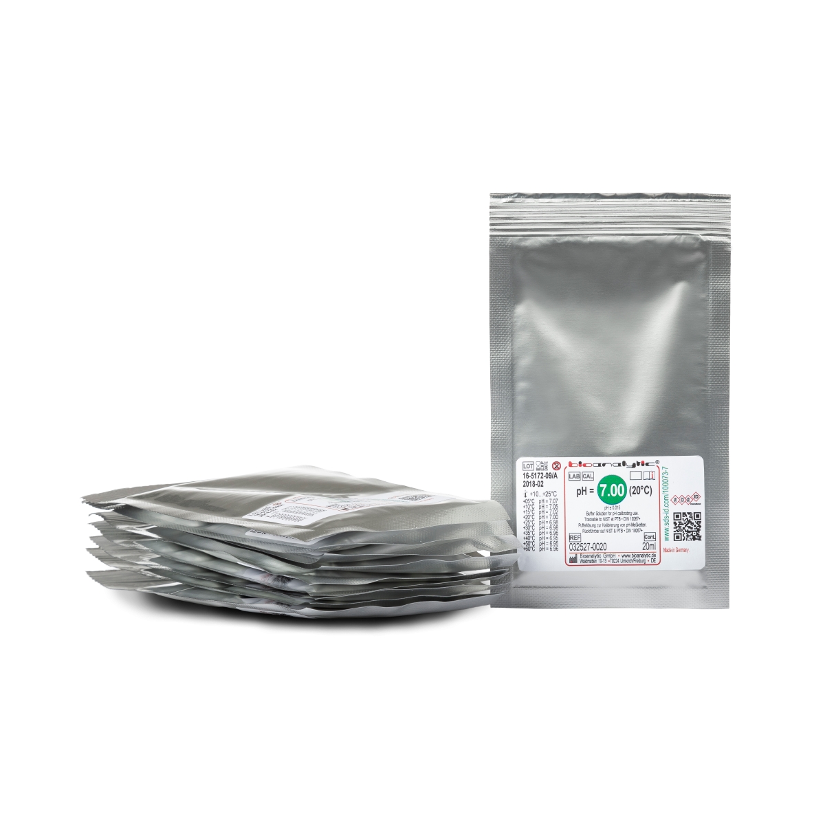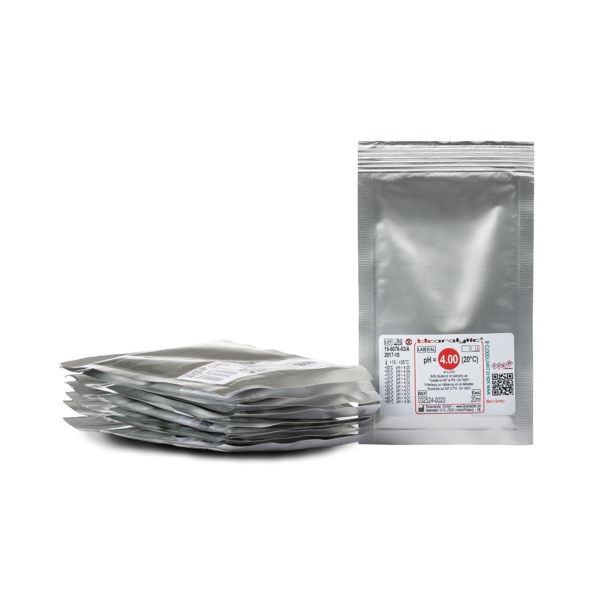 Roztwory buforowe pH zapakowane w torebkach foliowych Bioanalytik-4S. Szczelne opakowania zapewniają dłuższą trwałość oraz świeżość odczynników. Przeznaczone są do kalibrowania elektrod bezpośrednio w torebce. Z nadrukowaną tabelą kompensacji temperatury. Opakowania zawierają 10 torebek.